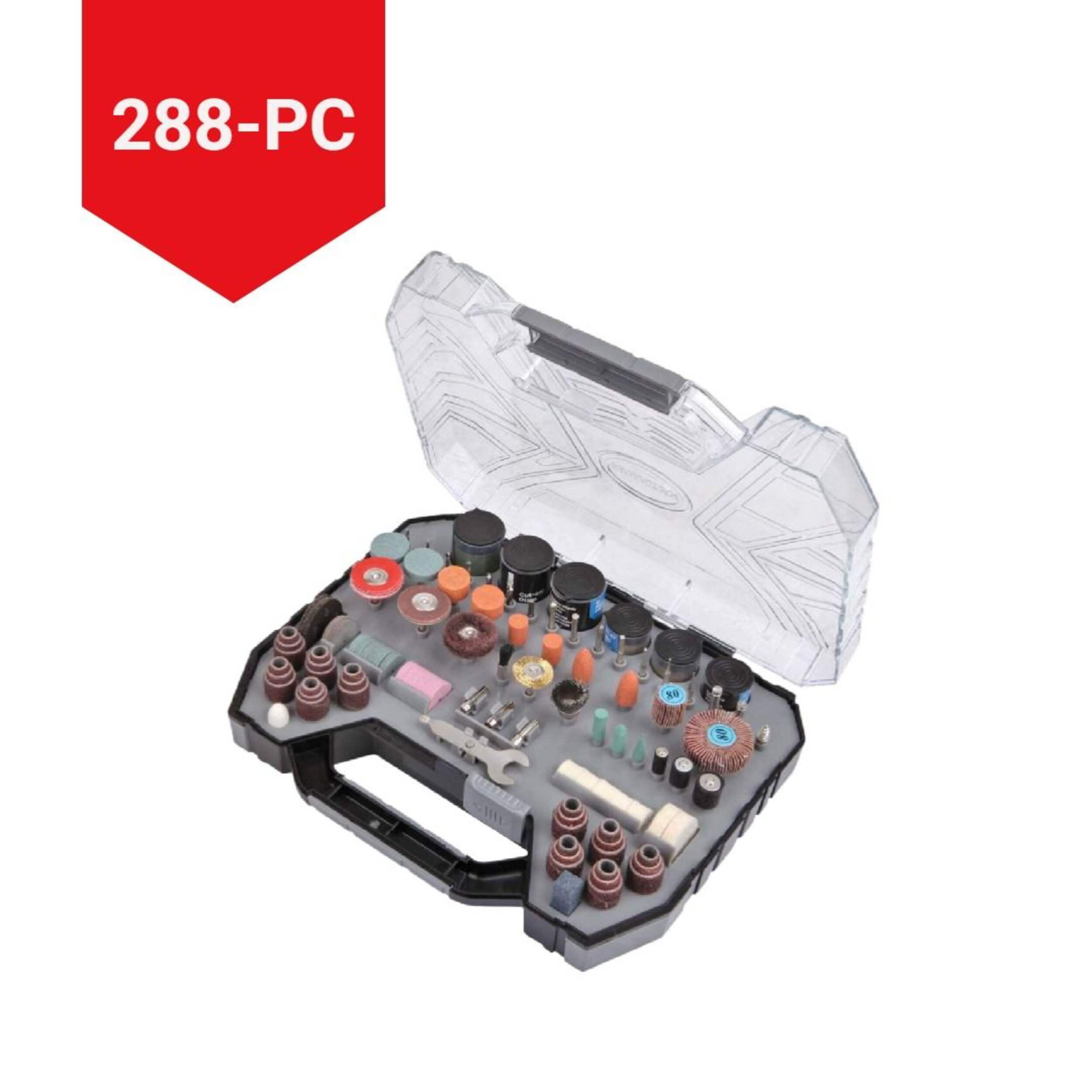 With a powerful 35,000 RPM operating speed, the MAXIMUM Multi-Purpose Rotary Tool Accessory Kit For Grinding & Sanding is a versatile set suitable for a variety of professional jobs. The brushes operate at a top speed of 15,000 RPM, and this 288-piece rotary tool accessory kit comes in a handy plastic case for easy transport and storage. The soft rubber handle reduces slips for safe, comfortable use.
