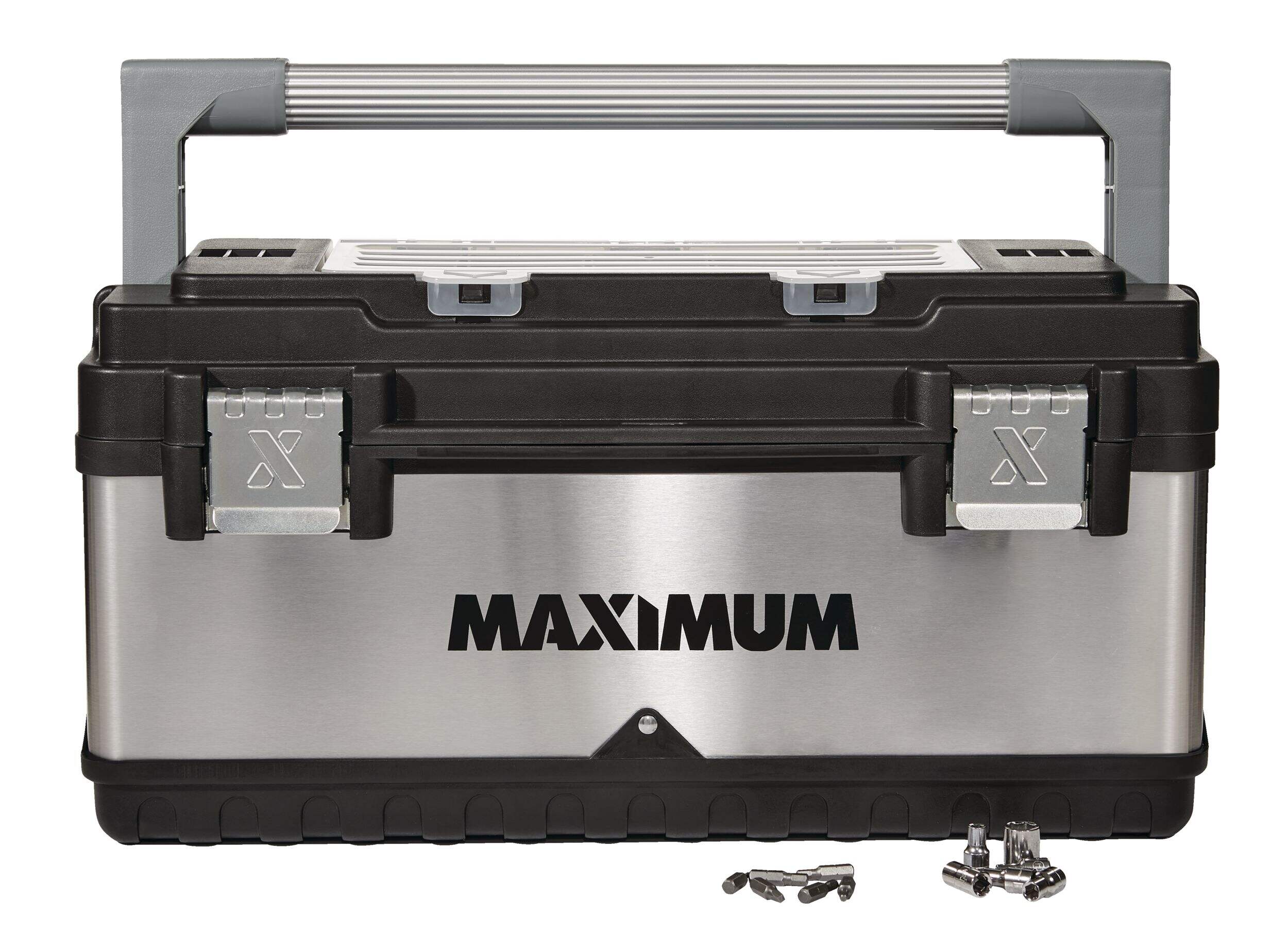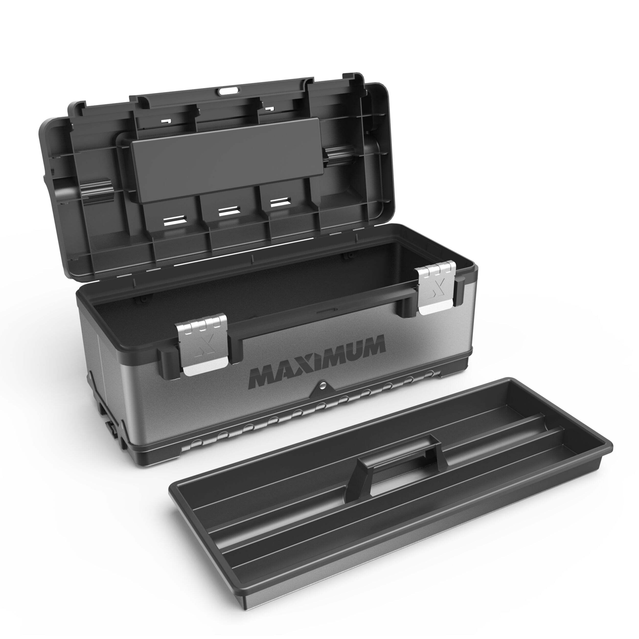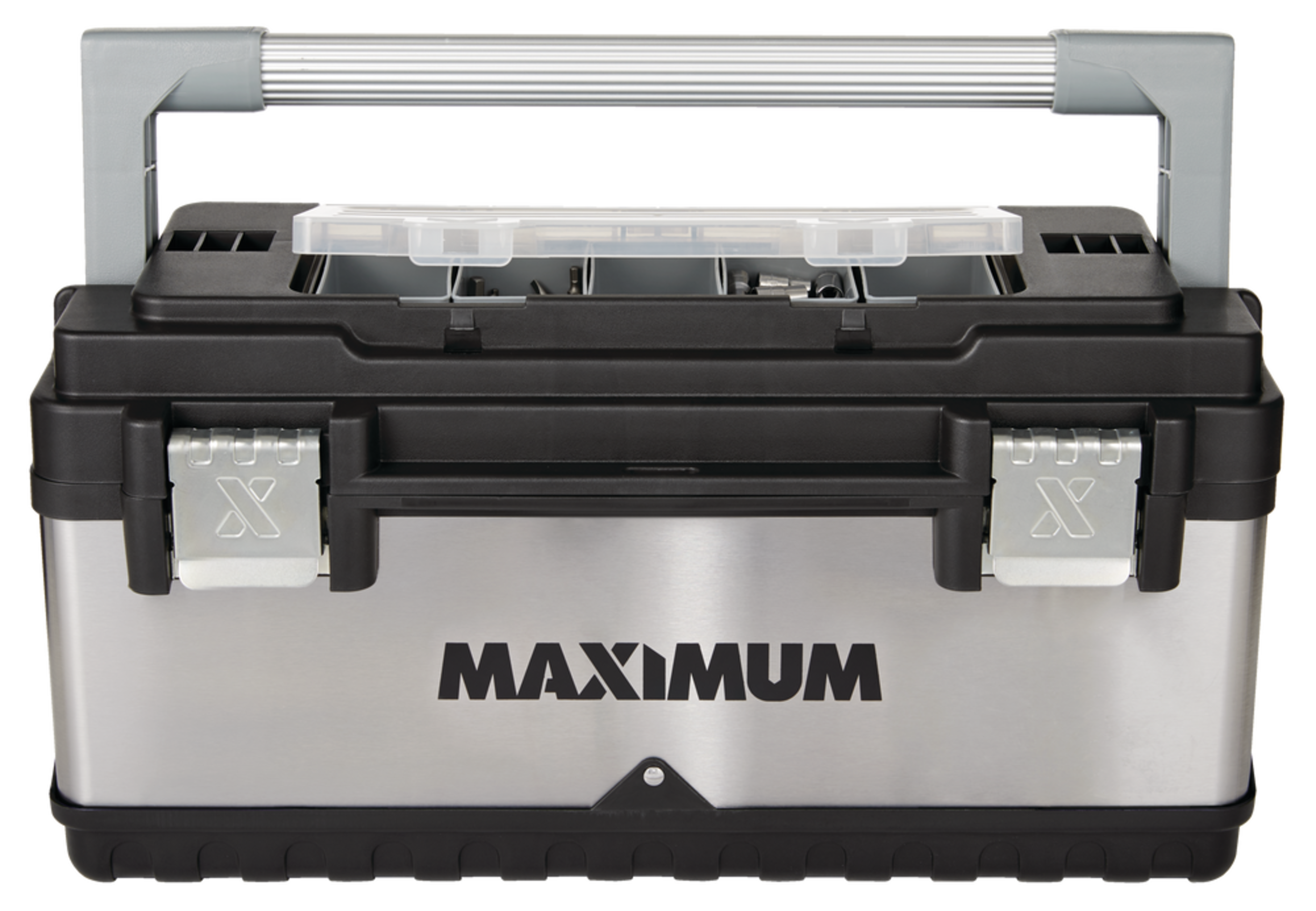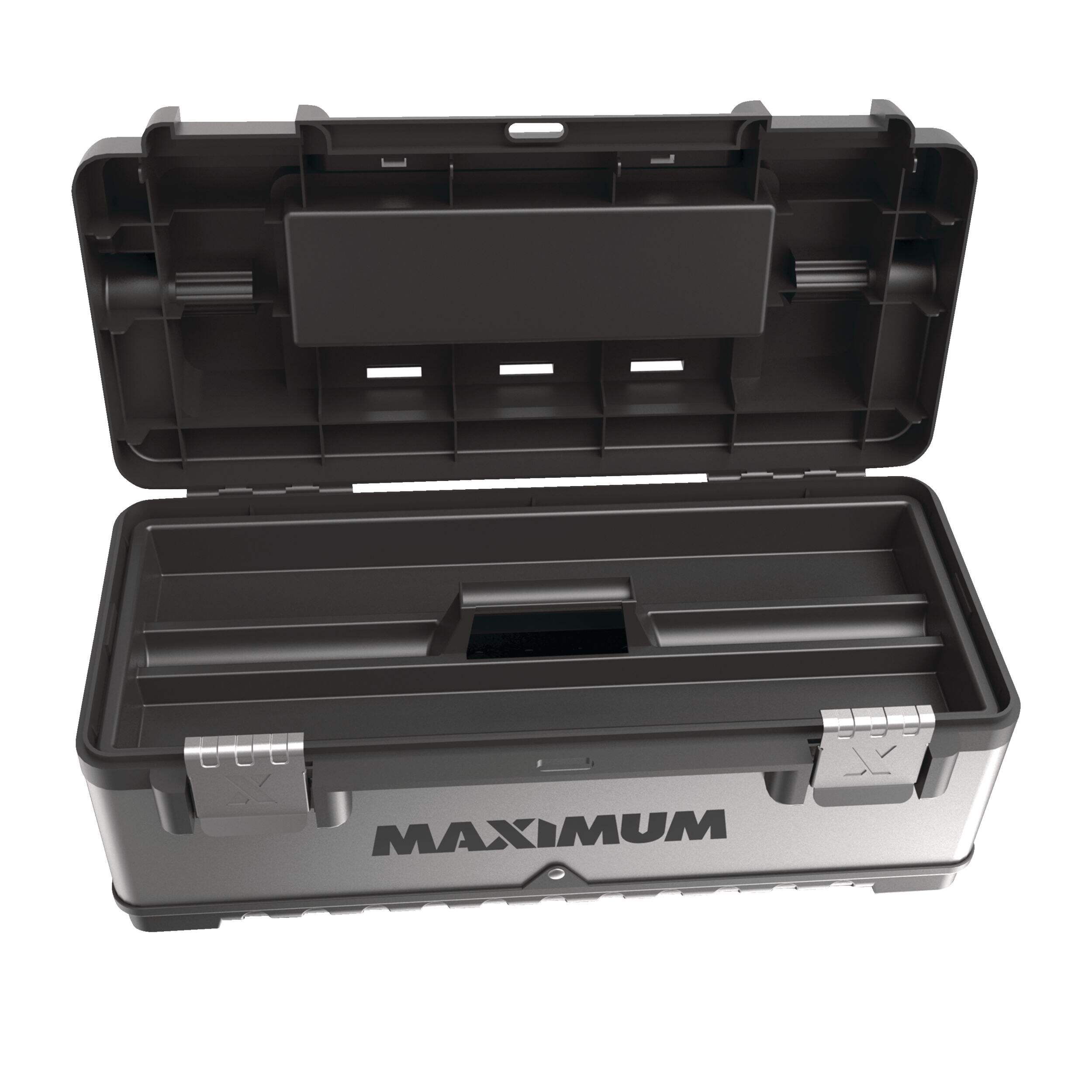 The MAXIMUM Metal & Plastic Tool Box is constructed using cold-rolled steel for added strength and durability. This durable storage chest is coated with an industrial, powder-coated finish to resist scratches and prevent future corrosion. The spacious MAXIMUM toolbox provides a secure and adaptable solution for ongoing projects. Additionally, the integrated top organizer helps keep smaller tools and accessories easily accessible. With this toolbox, you’ll always have your tools organized and ready for any task at hand.