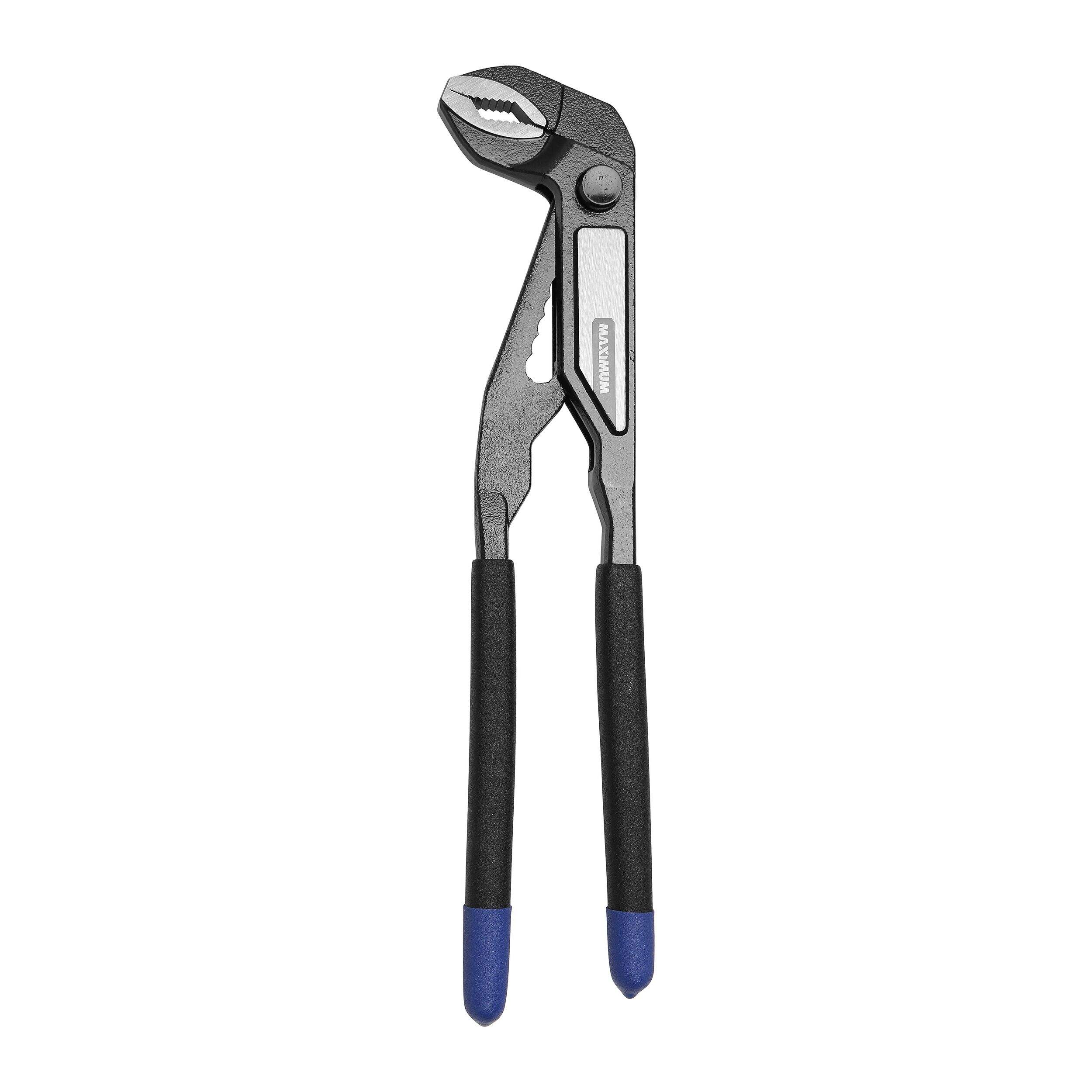 The MAXIMUM Push Button V Jaw Tongue & Groove Pliers are designed to grip a variety of shaped objects and materials. They feature a convenient push button locking mechanism for easy one-handed use. Constructed from durable alloy steel, these pliers have an oil and solvent-resistant finish for simple maintenance. The soft vinyl grip ensures comfort, while the colour-coded tips allow for easy identification in your toolbox.