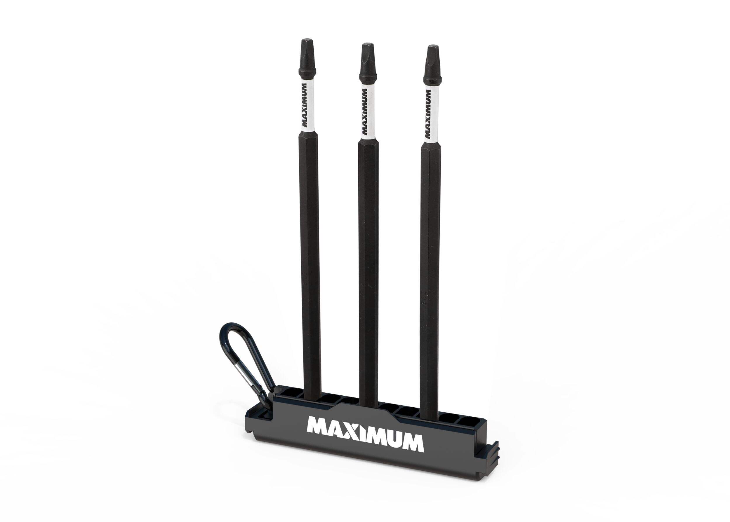 The MAXIMUM Square #2 Carabiner Screw Bit Set packs serious torque-absorbing power in a compact, easy-to-carry design. This set features 6-inch square bits that are ideal for reaching tight or hard-to-access spaces. But the real magic lies in the handy carabiner that lets you hook these bits to your belt loop or tool bag for easy access and storage. So whether you're a DIYer tackling projects at home or a pro working on job sites, these bits deliver the ruggedness and precision you need to power through any task with maximum efficiency.