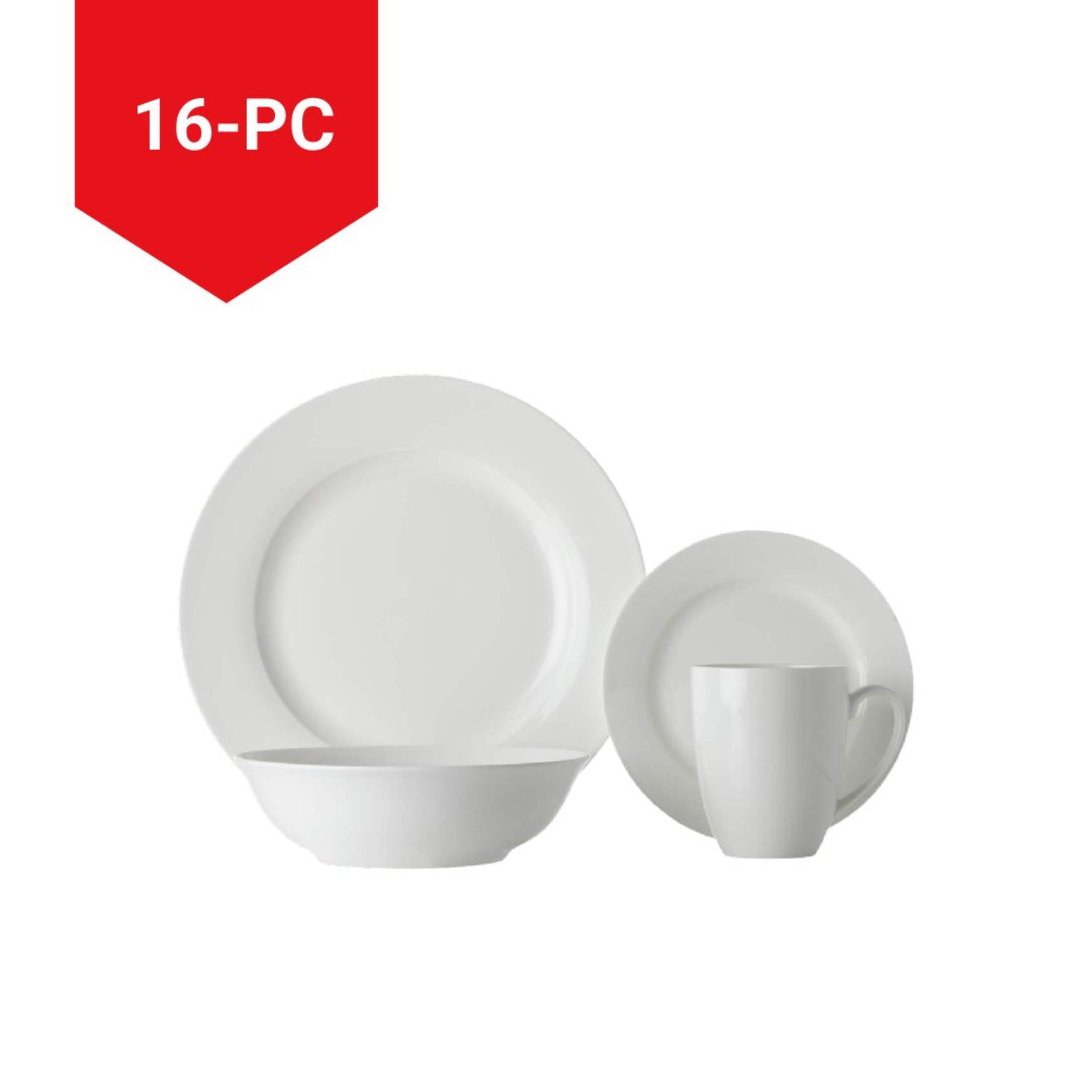 The Maxwell & Williams Soho Rim Porcelain Dinnerware Set, 16-pc, White, brings timeless elegance to your dining table with its sleek, white finish and clean lines. Crafted from durable porcelain, this set includes 4 dinner plates, 4 side plates, 4 bowls, and 4 mugs, all of which are microwave and dishwasher safe. Perfect for both casual meals and formal occasions, this versatile set is designed to enhance your dining experience with sophistication and style.