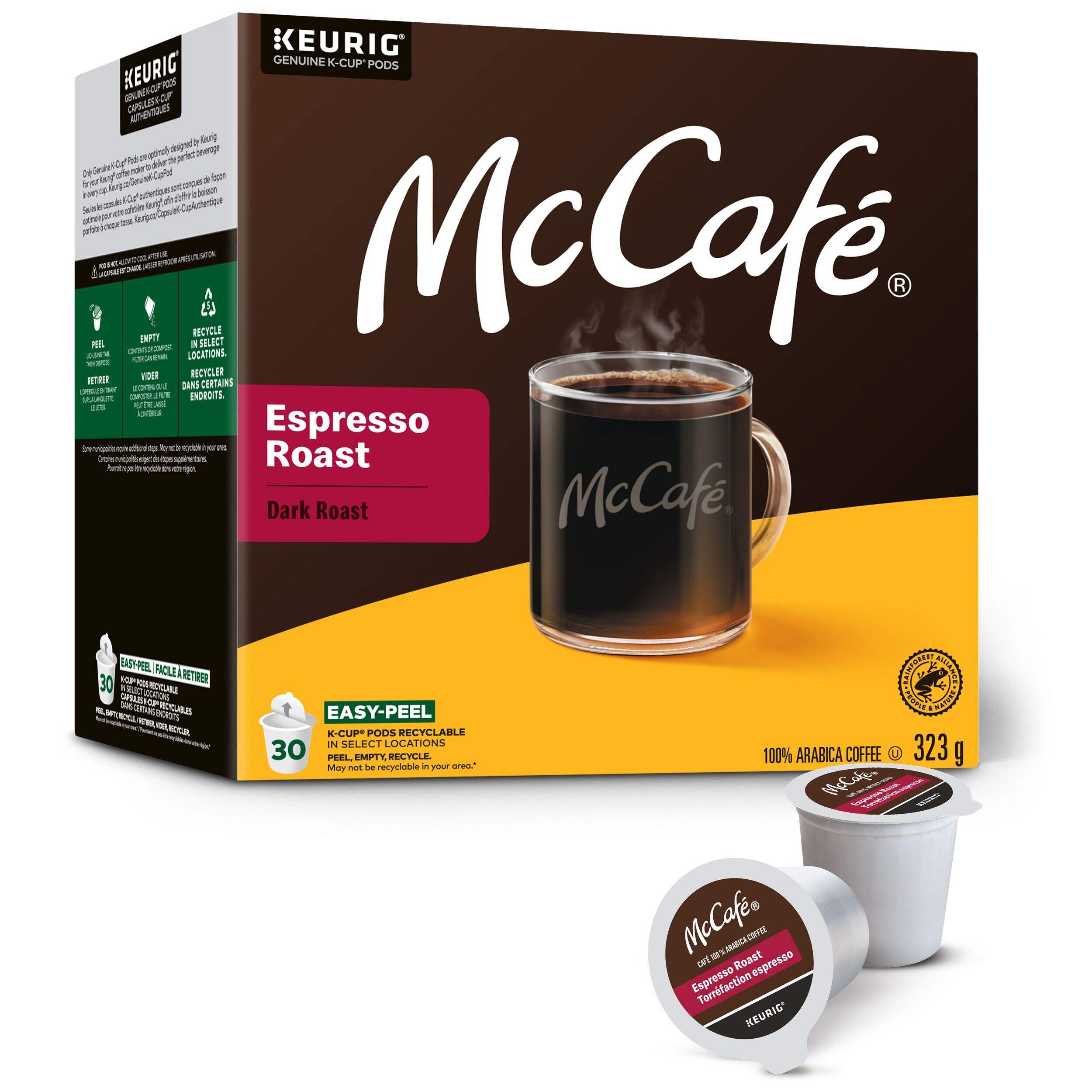 Brew the irresistible taste of McCafé Espresso Dark Roast K-Cup Coffee Pods and start your day off on the right foot. Each batch of McCafé Premium Roast coffee is carefully tasted by master craftsmen to ensure that it delivers the rich, smooth, delicious taste you love.