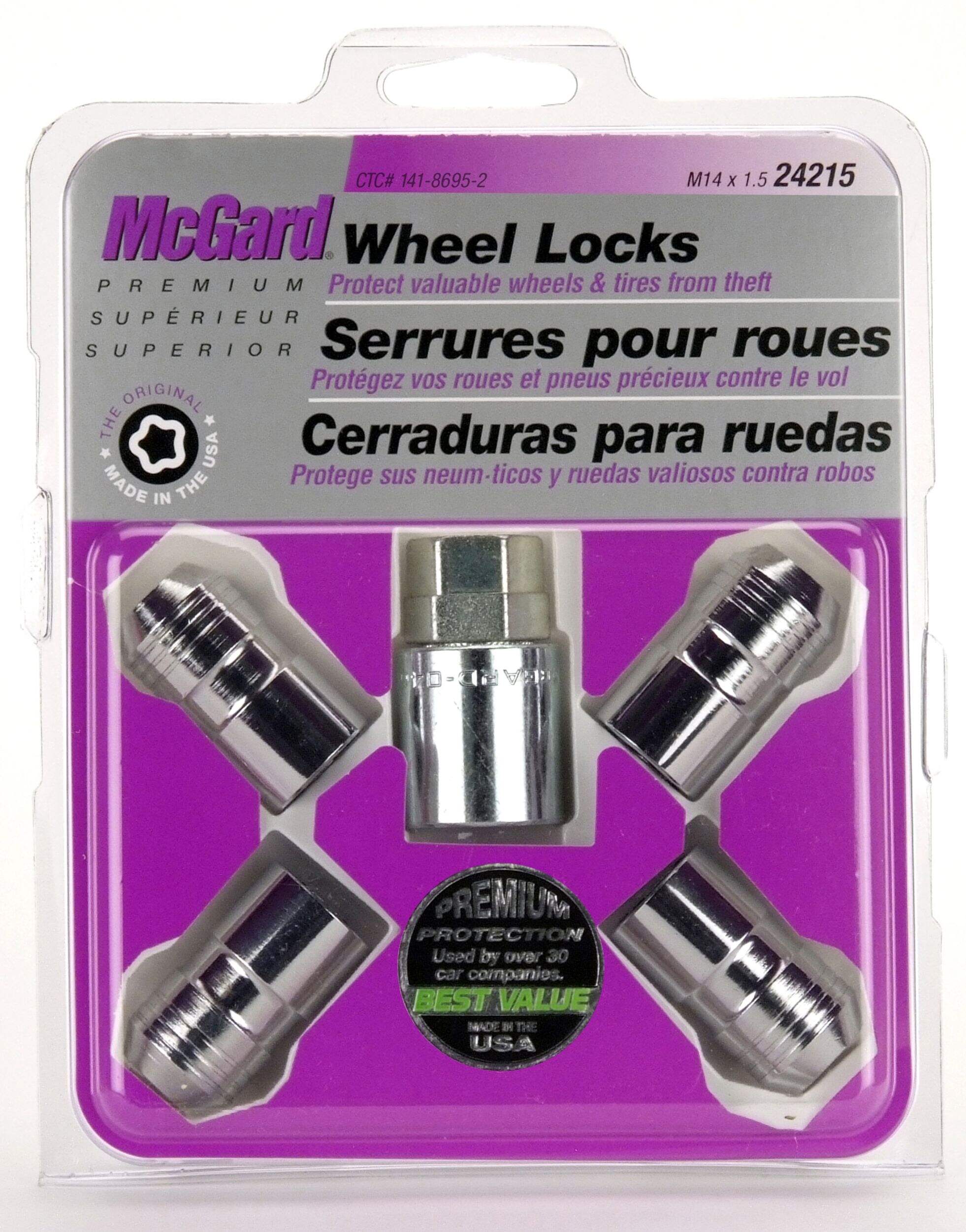 Keep your wheels safe with the McGard 24215 Cone Seat Wheel Lock Set. These locks function like regular lug nuts but require a unique key for installation and removal to help deter theft. Built using through-hardened steel with a rust-resistant nickel-chrome finish, these wheel locks are designed to last. Precision key designs help ensure easy use while resisting tampering for superior safety and security.