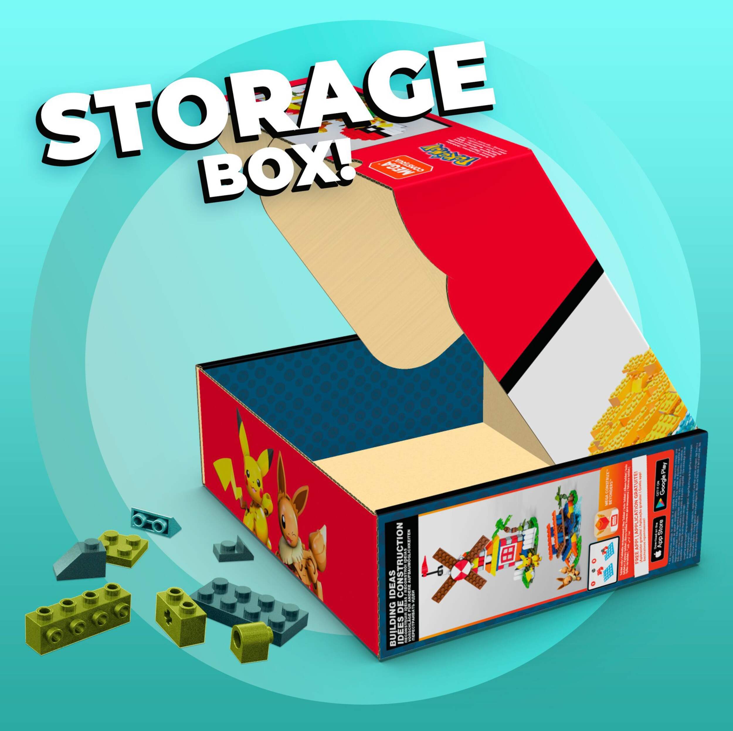 Mega Construx™ Pokémon Building Box is a 450-piece Pokémon-themed building set with special pieces, unique shapes and a resealable storage box