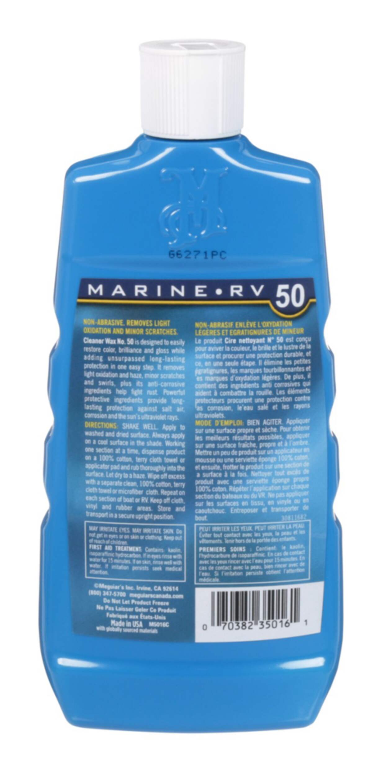 Meguiar's Cleaner Wax is a non-abrasive formula that quickly cleans, polishes, and protects all fiberglass gel coat marine or RV surfaces