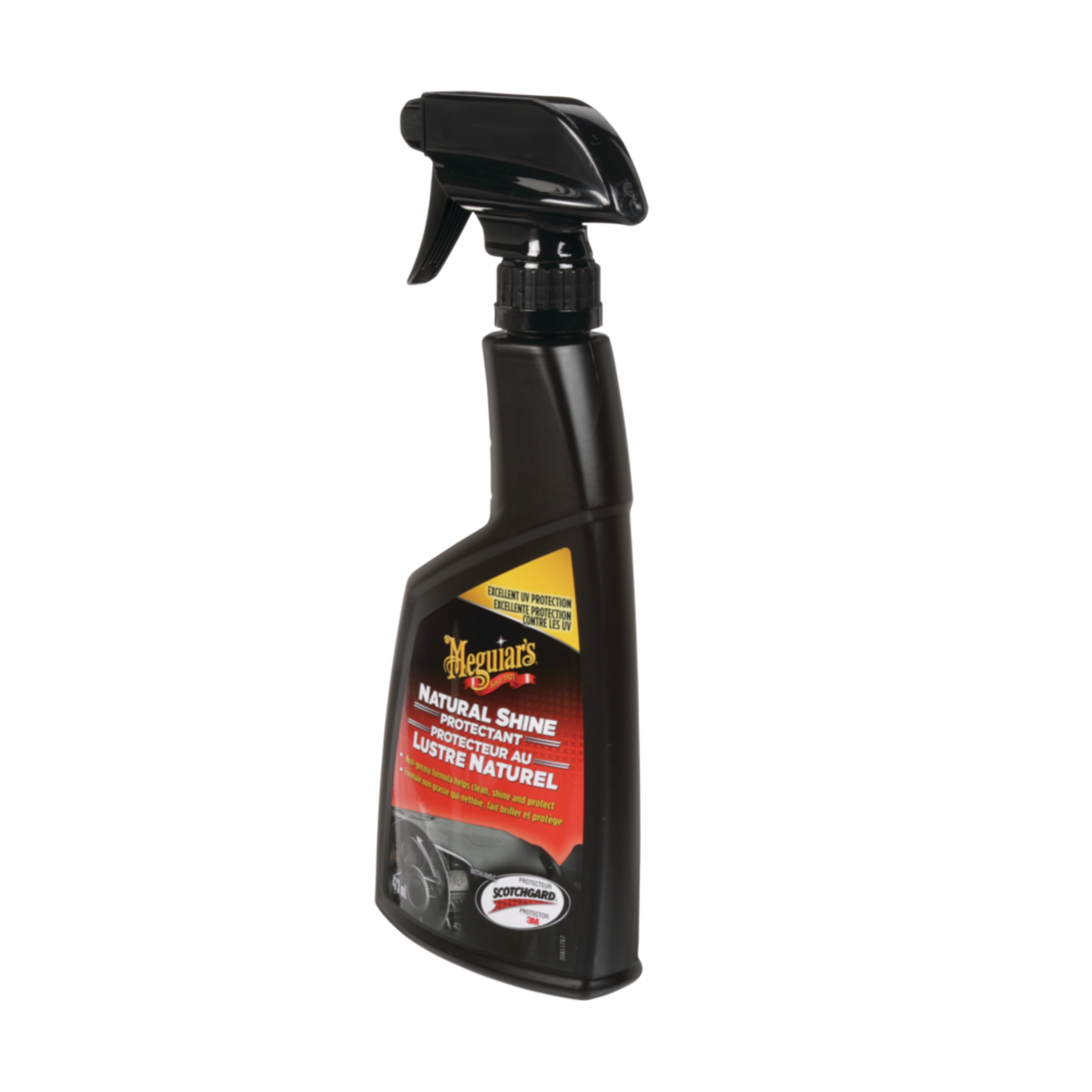 Keep the interior of your vehicle in pristine condition with a quality clean from Meguiar’s® Natural Shine® Protectant Spray, 473-mL. This quality automotive protectant spray removes surface contaminants and leaves a glass-like finish behind. An easy way to clean and maintain the interior of your vehicle, the spray provides superior UV resistance and also features Scotchguard by 3M to help protect surfaces for longer.