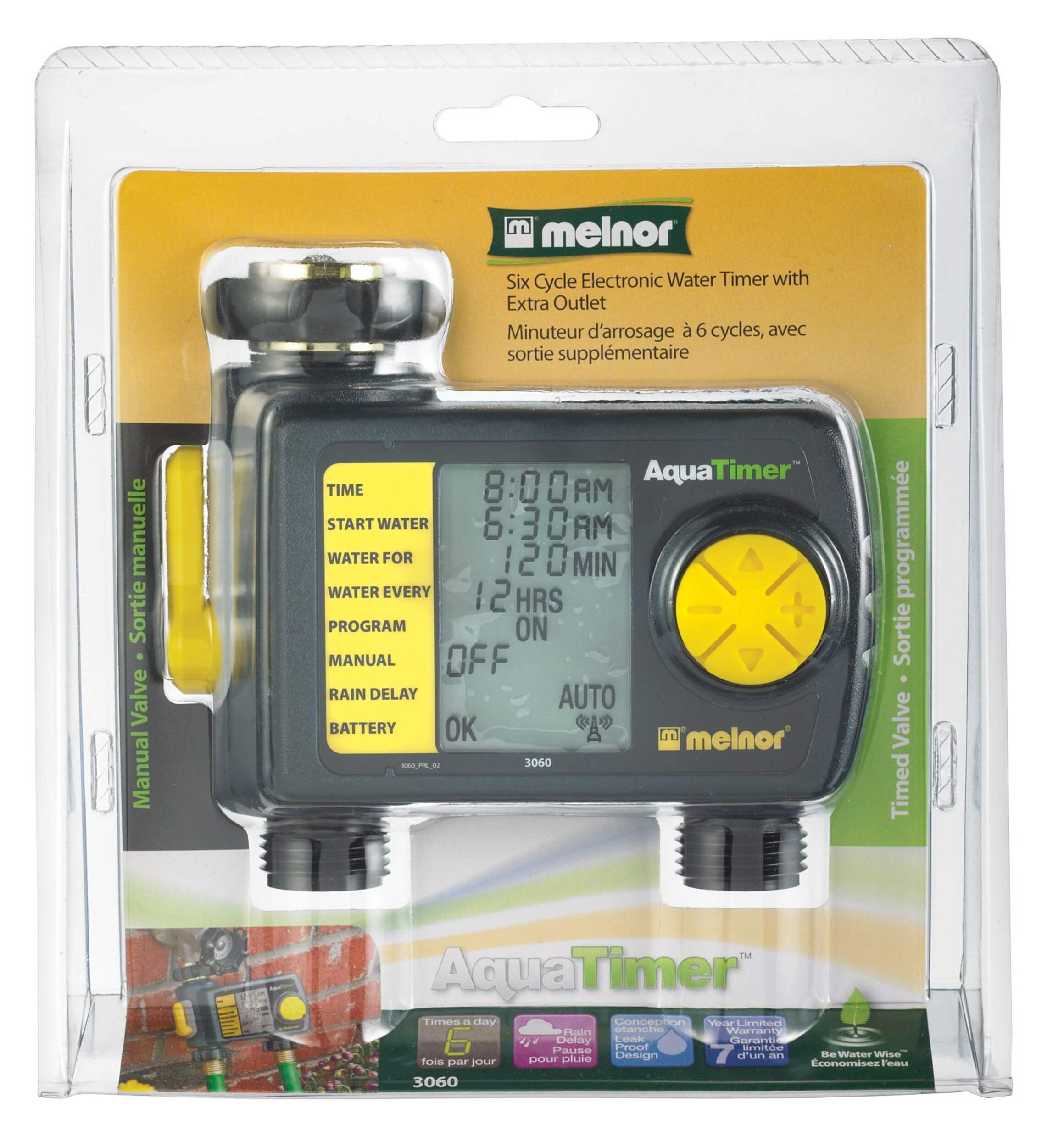 Melnor Digital 1 Zone/2 Port Water Timer features two water outlets for dual watering
