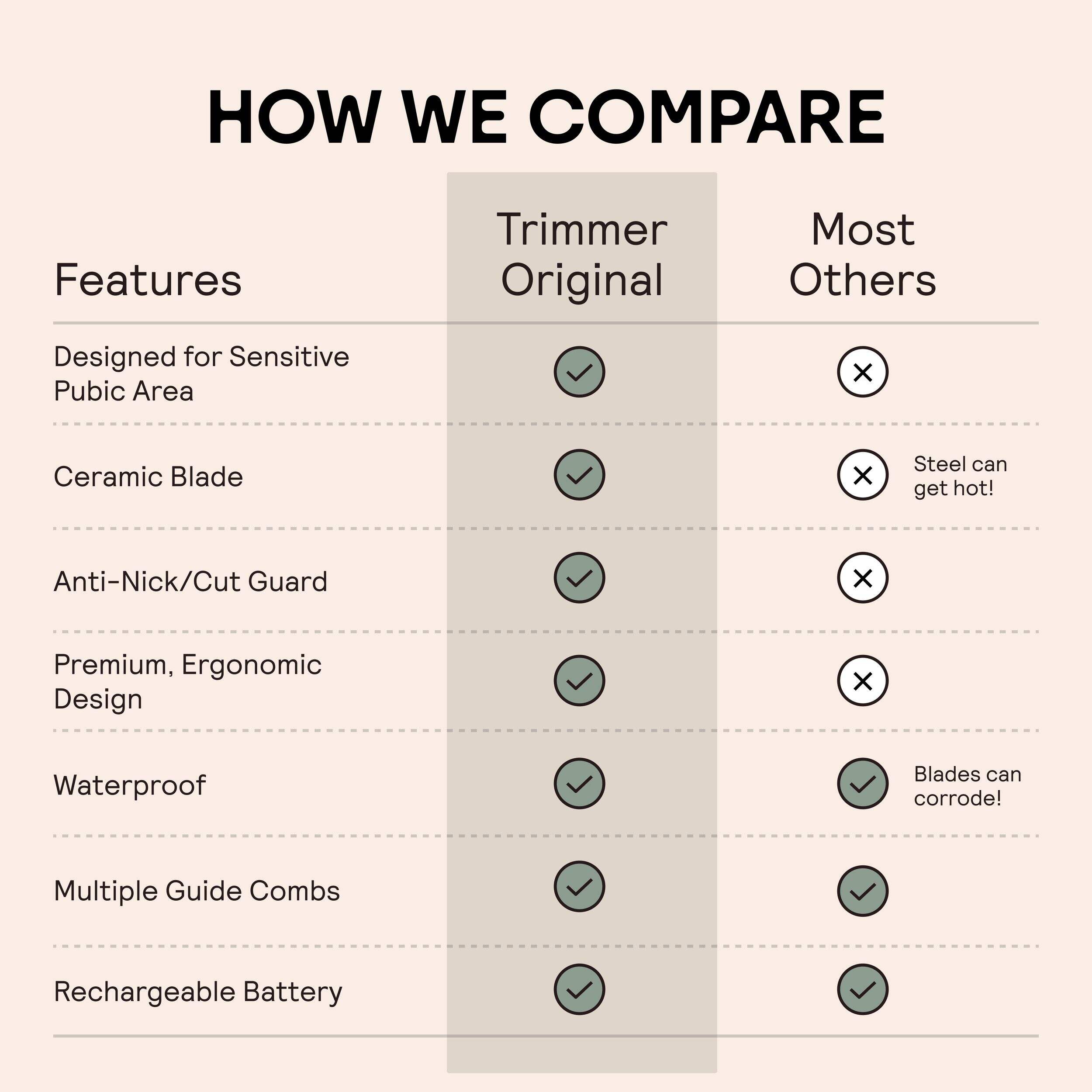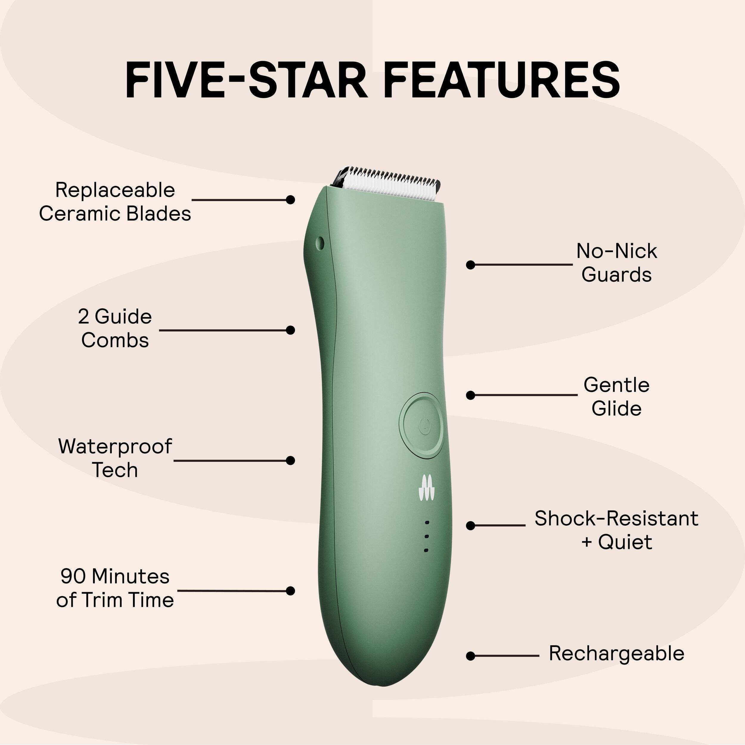 Equipped with a precision ceramic blade that effortlessly removes pubic hair with no nicks or cuts
