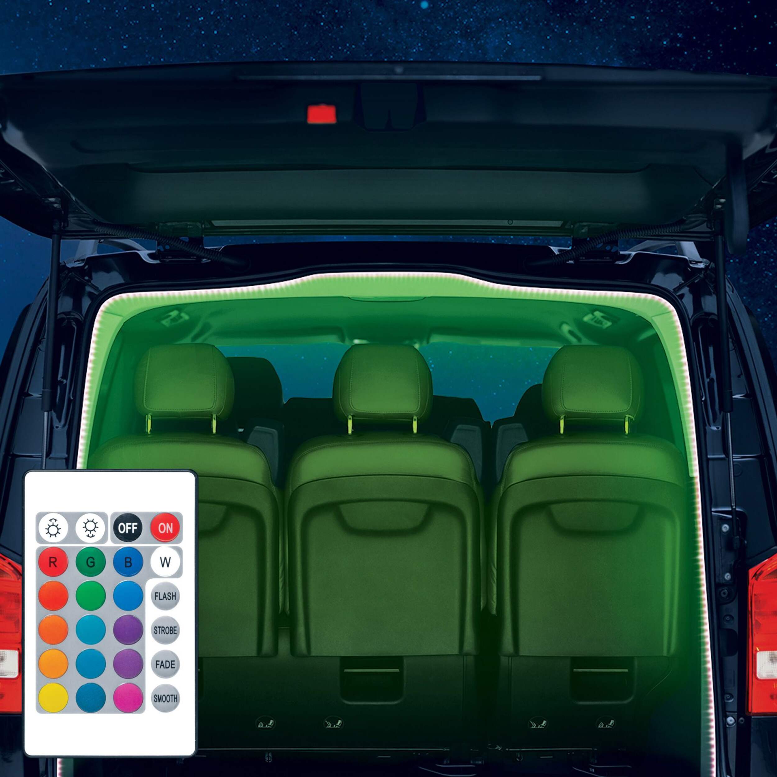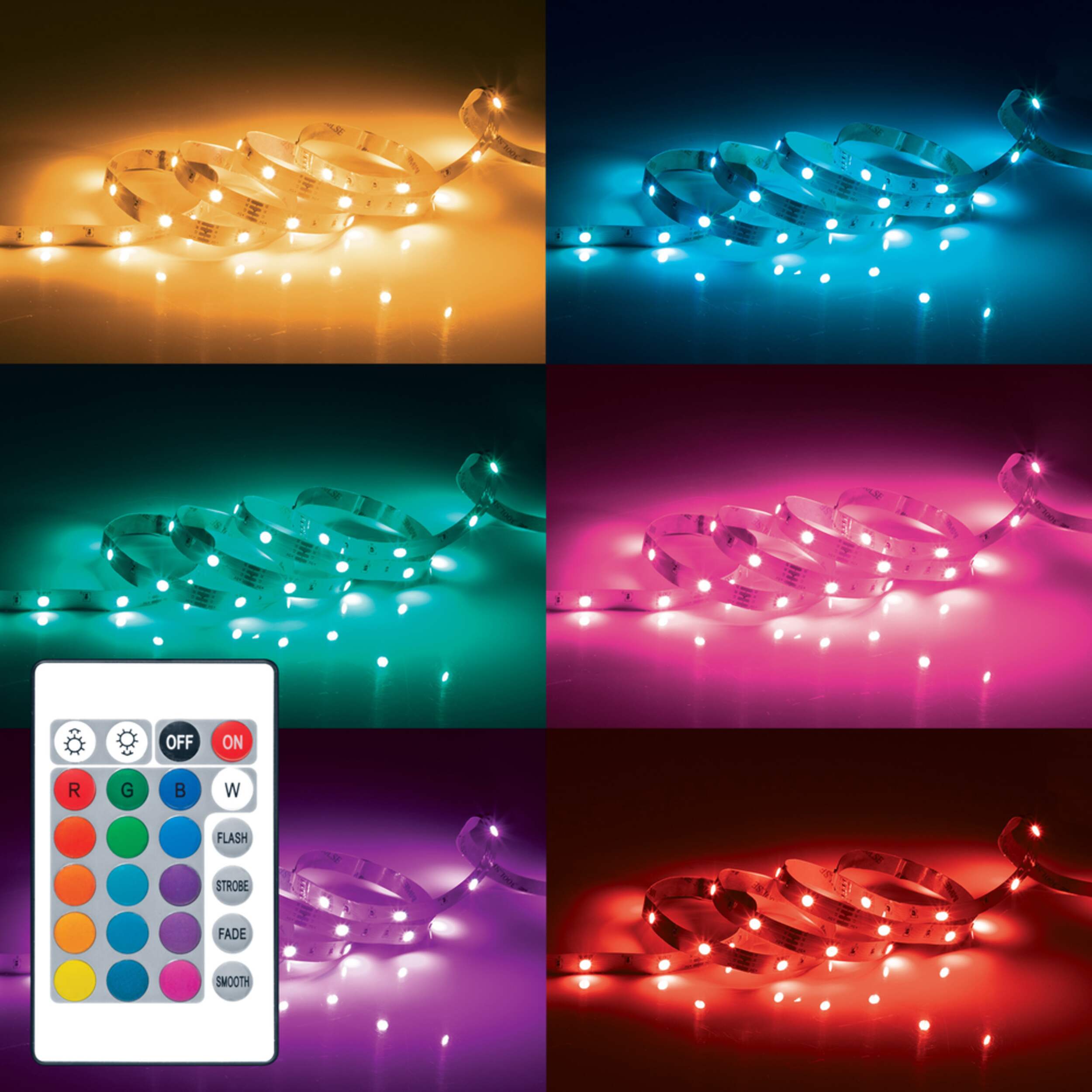 Choose from 16 LED colours and 5 lighting modes with the included remote control
