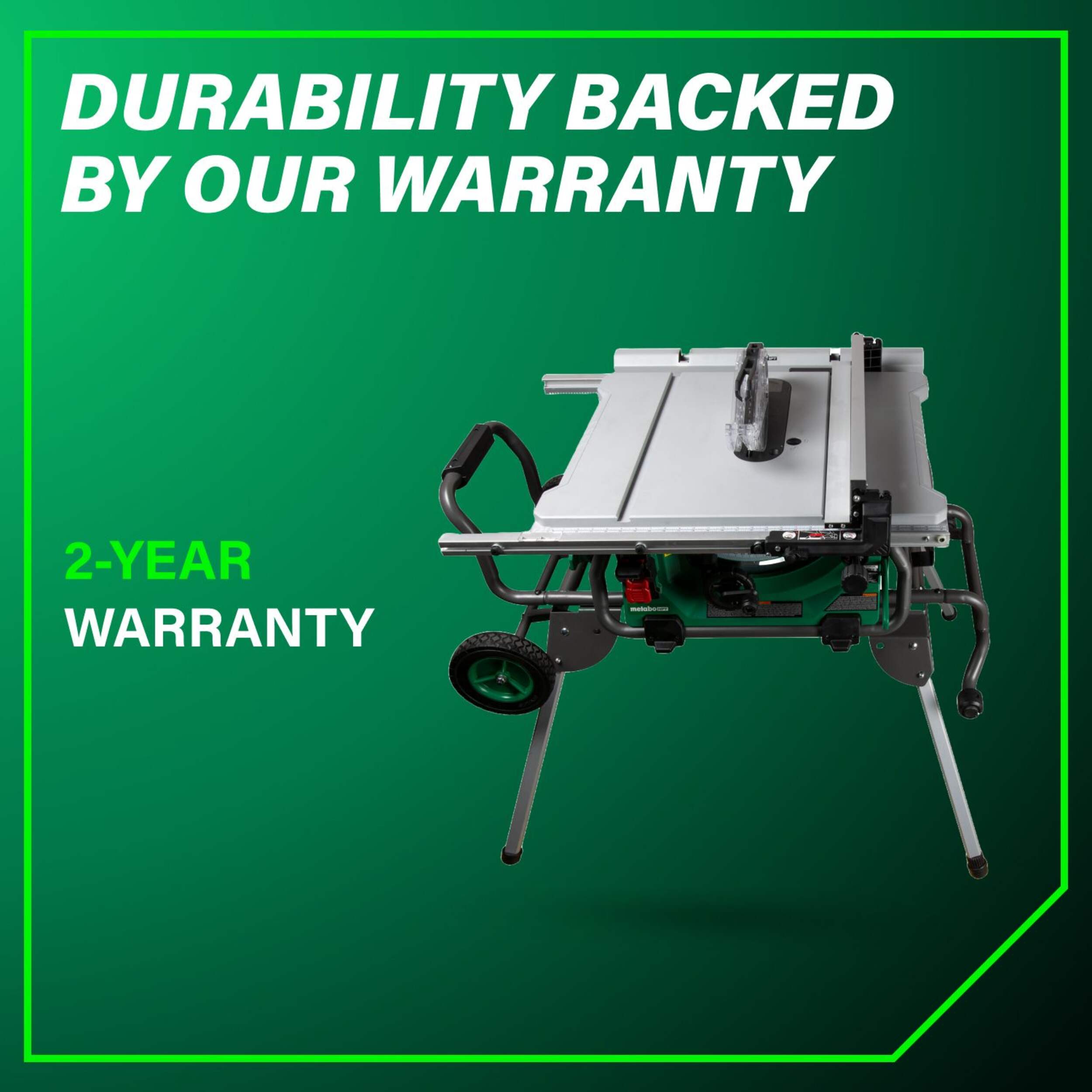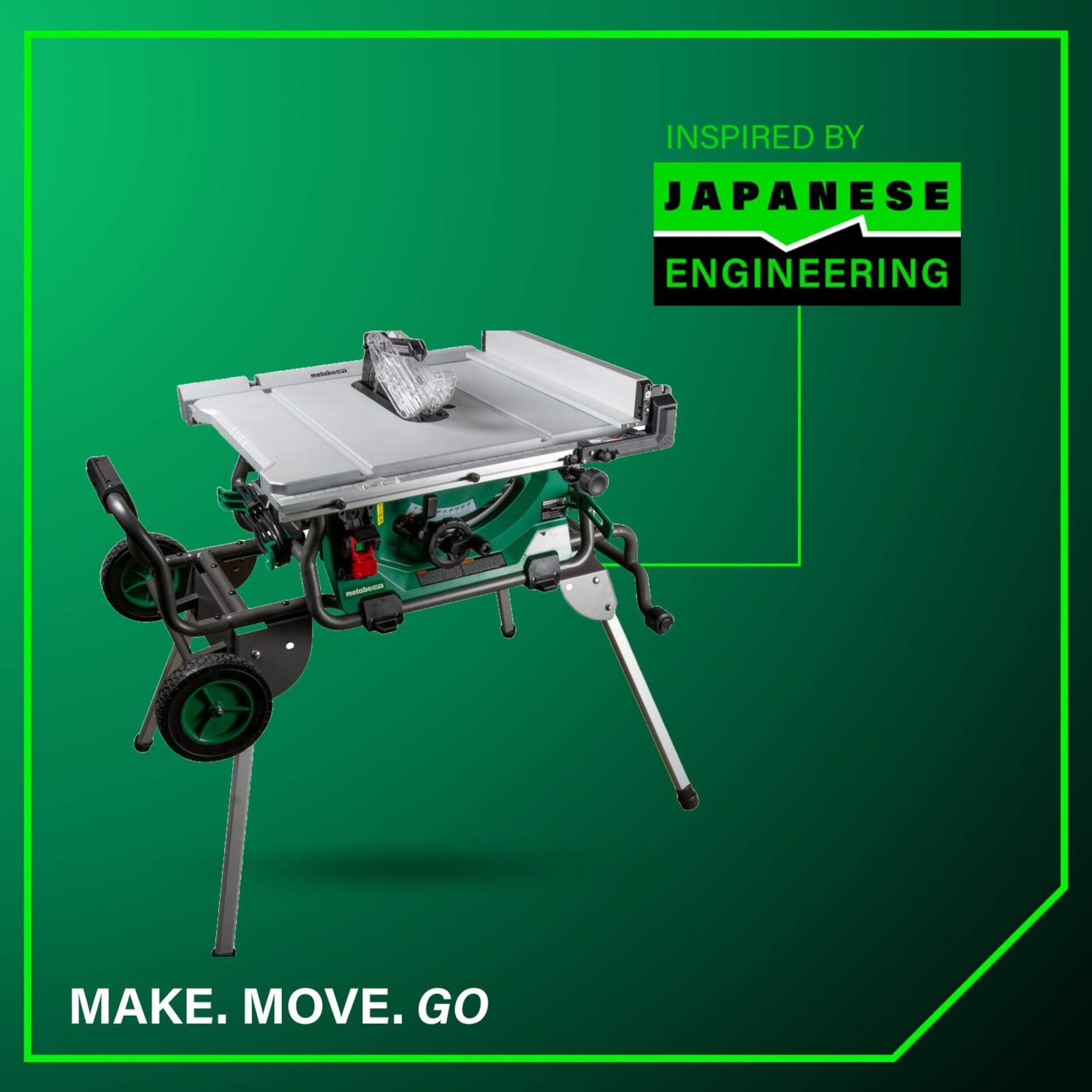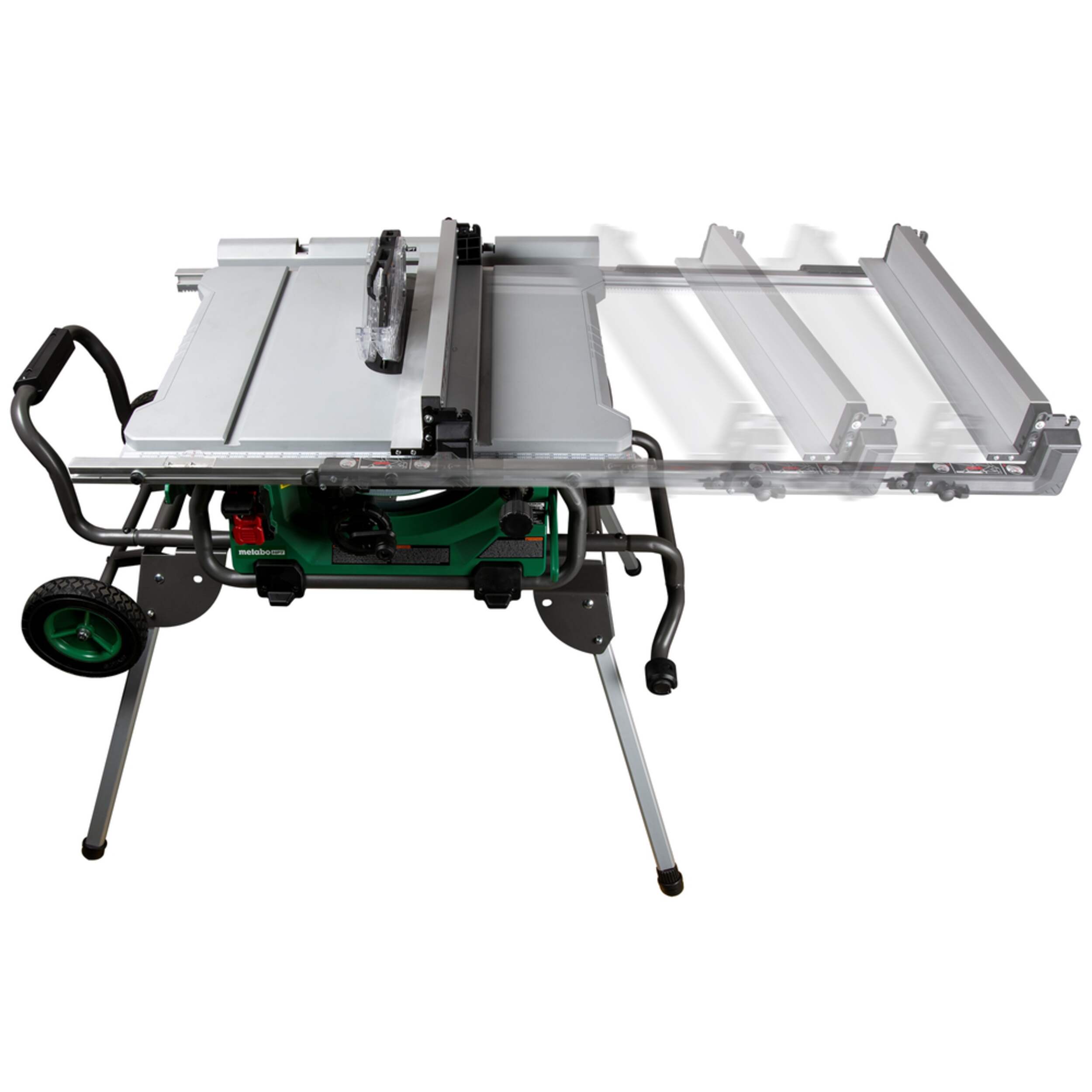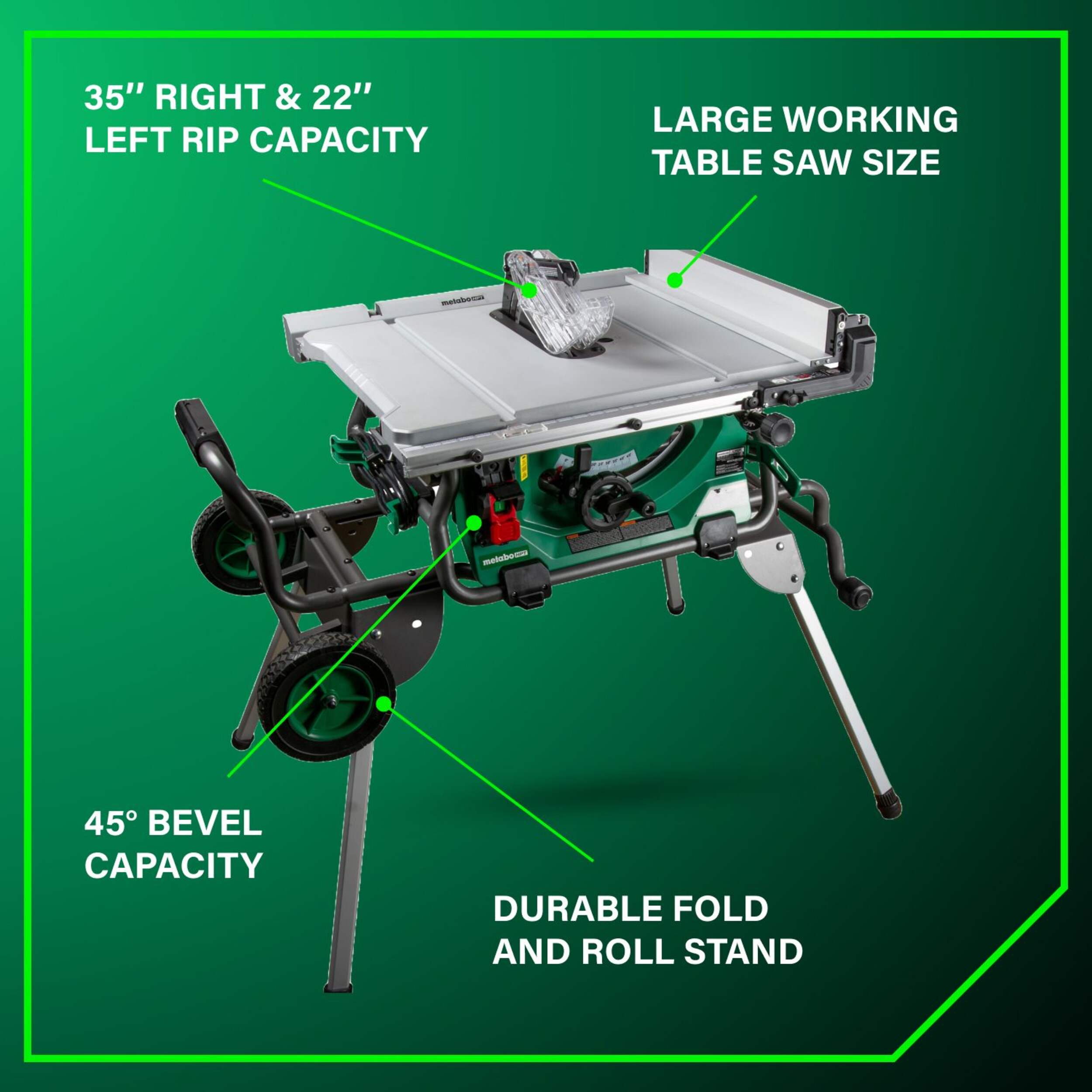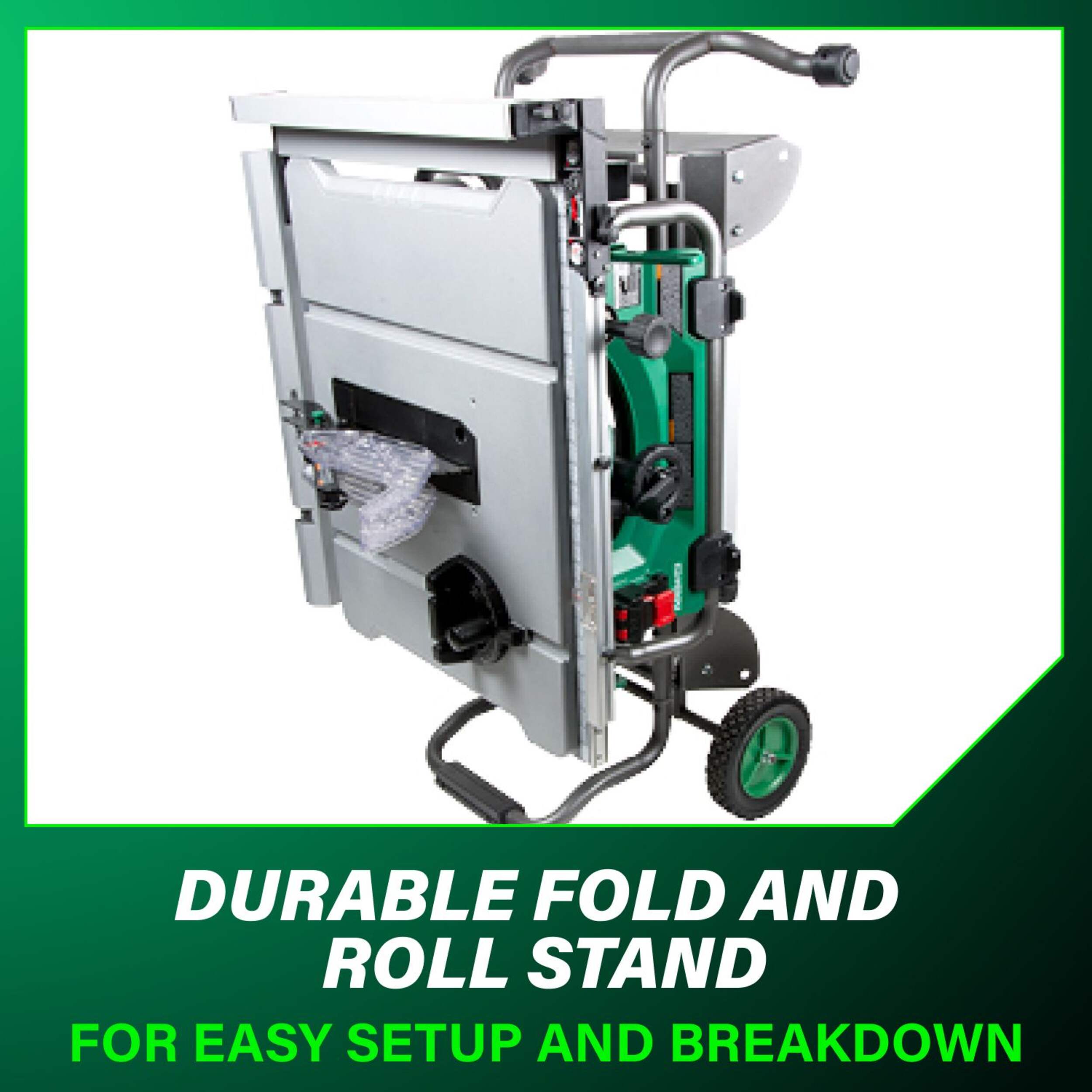 Metabo HPT 10" Jobsite Table Saw 15A with Stand features a powerful 15 Amp motor with 4,500 RPM for tackling toughest cutting applications