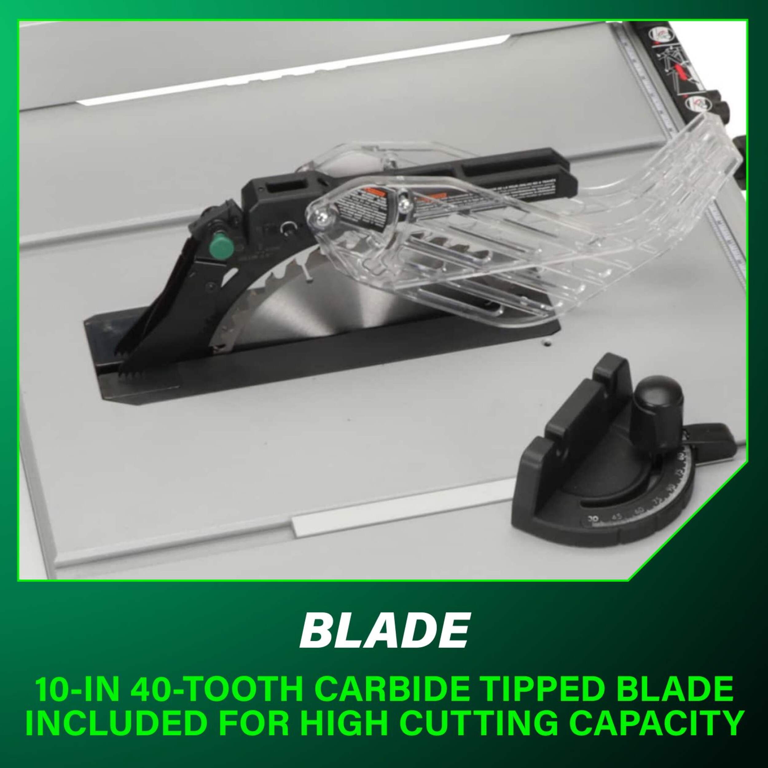 10" (25.4 cm) 40T carbide tipped blade offers high cutting capacity