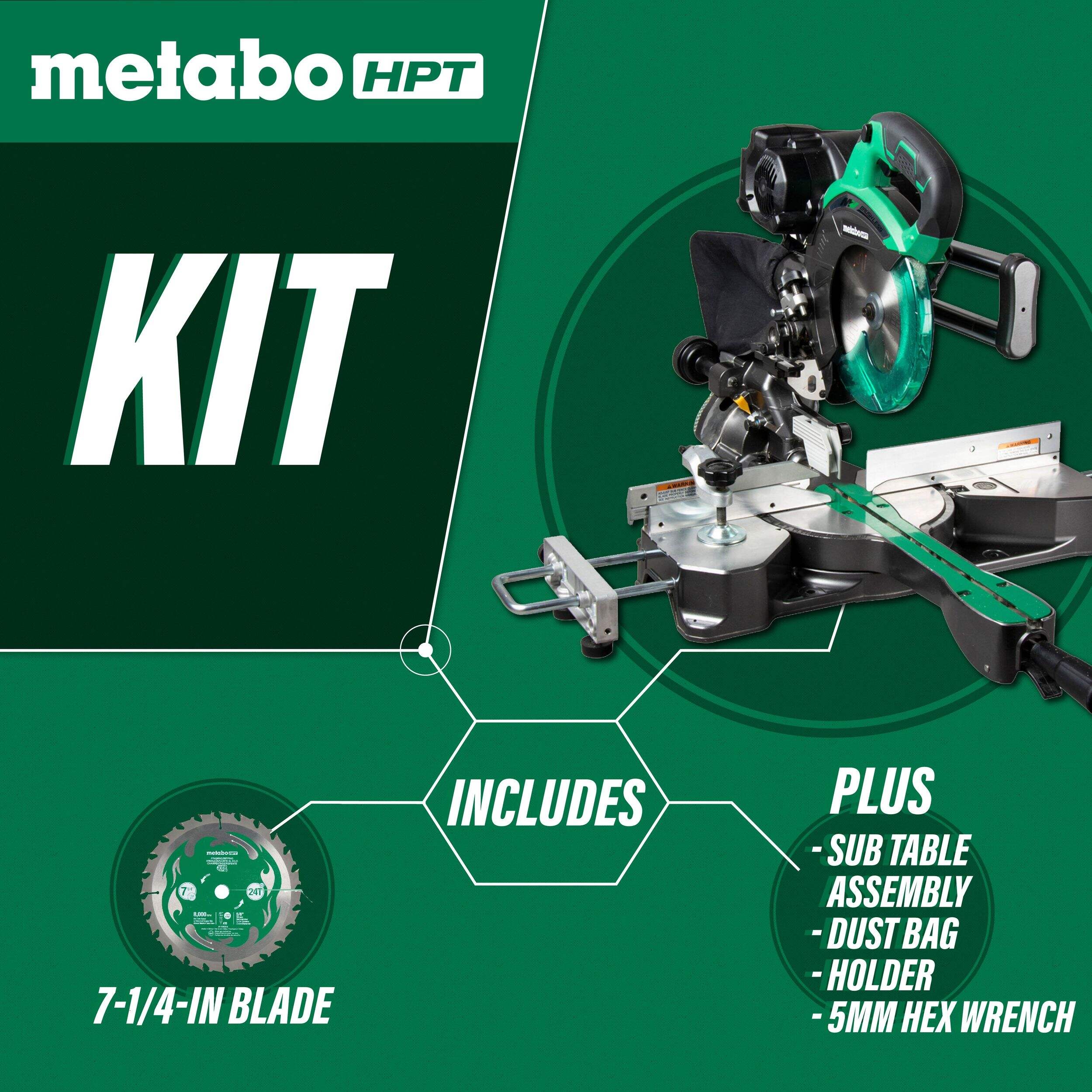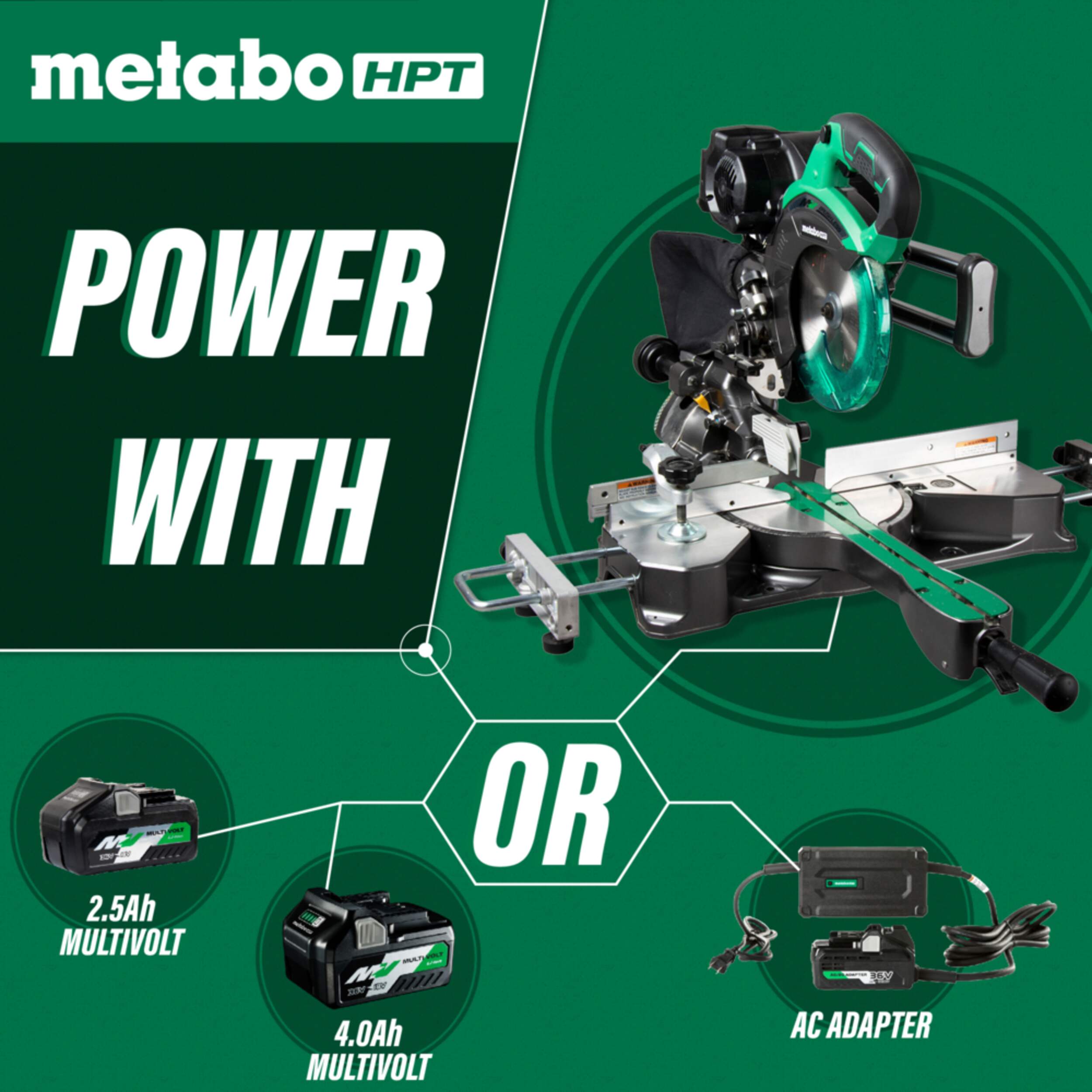 Metabo HPT 36V Brushless 7-1/4-in Dual Bevel Sliding Miter Saw features a 12 Amp motor with intense power for the toughest cutting jobs