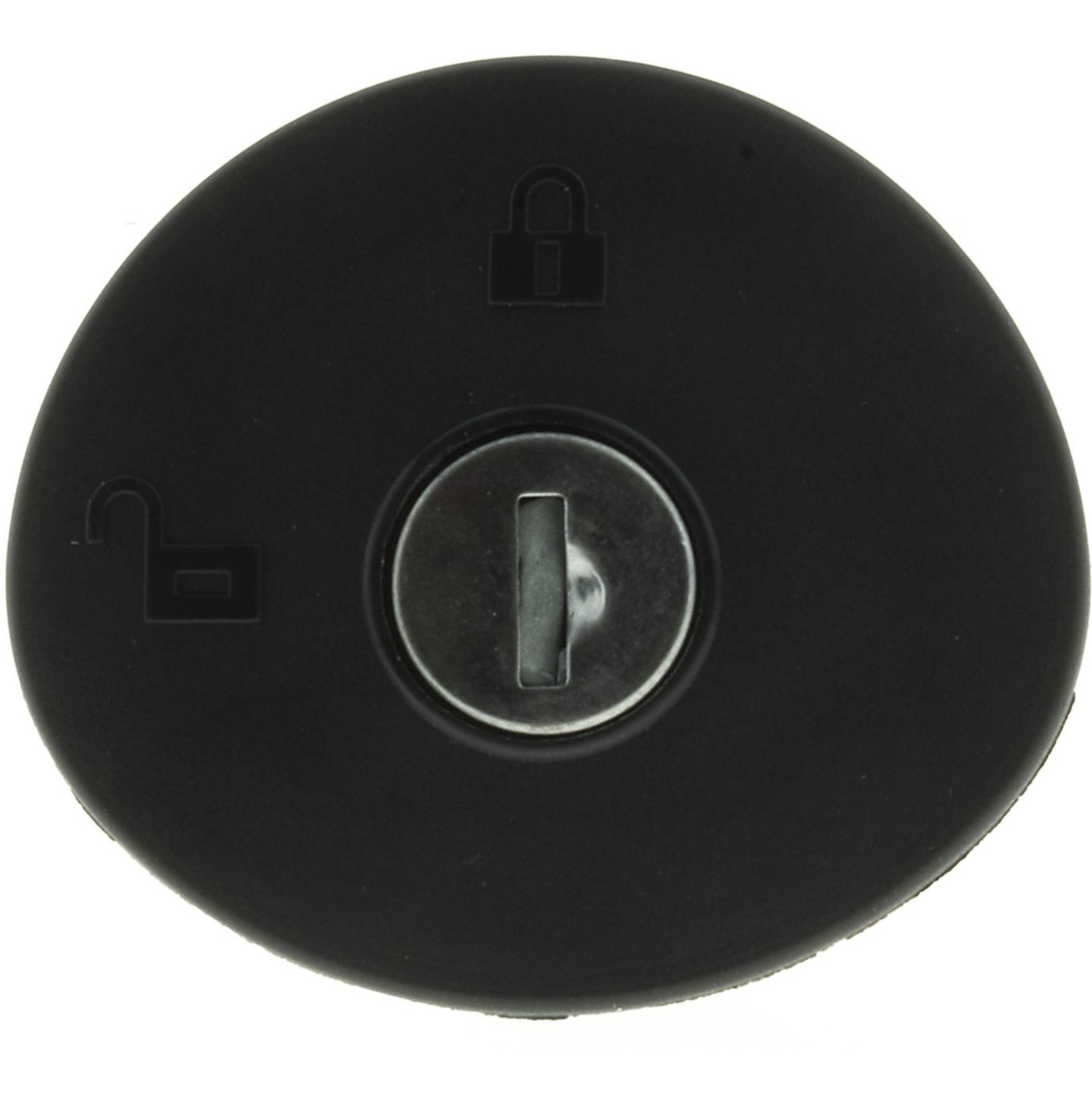 When the key is turned to the left and removed, the cap is unlocked and no longer spins freely