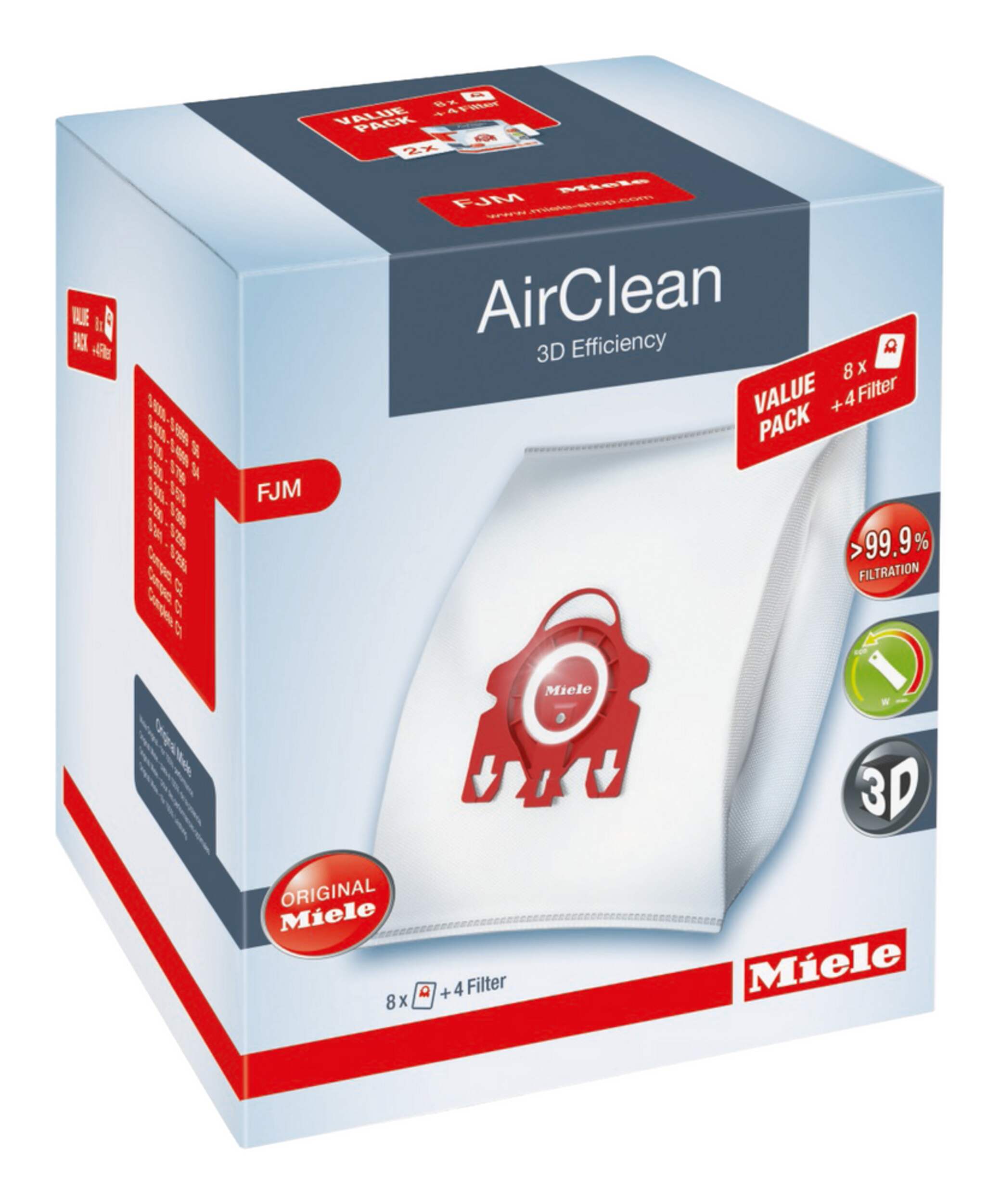 The Miele AirClean 3D Efficiency FJM Dust Bags Value Pack complements your Miele vacuum, allowing you to maintain superior cleaning performance. This XL pack offers an 8% savings compared to purchasing items separately. The 3D efficiency design allows optimal airflow, even at lower suction settings, enhancing energy efficiency. Compatible with Miele vacuum models S4, S6, Compact C1, and Compact C2, this value pack helps keep your vacuum operating at peak performance.