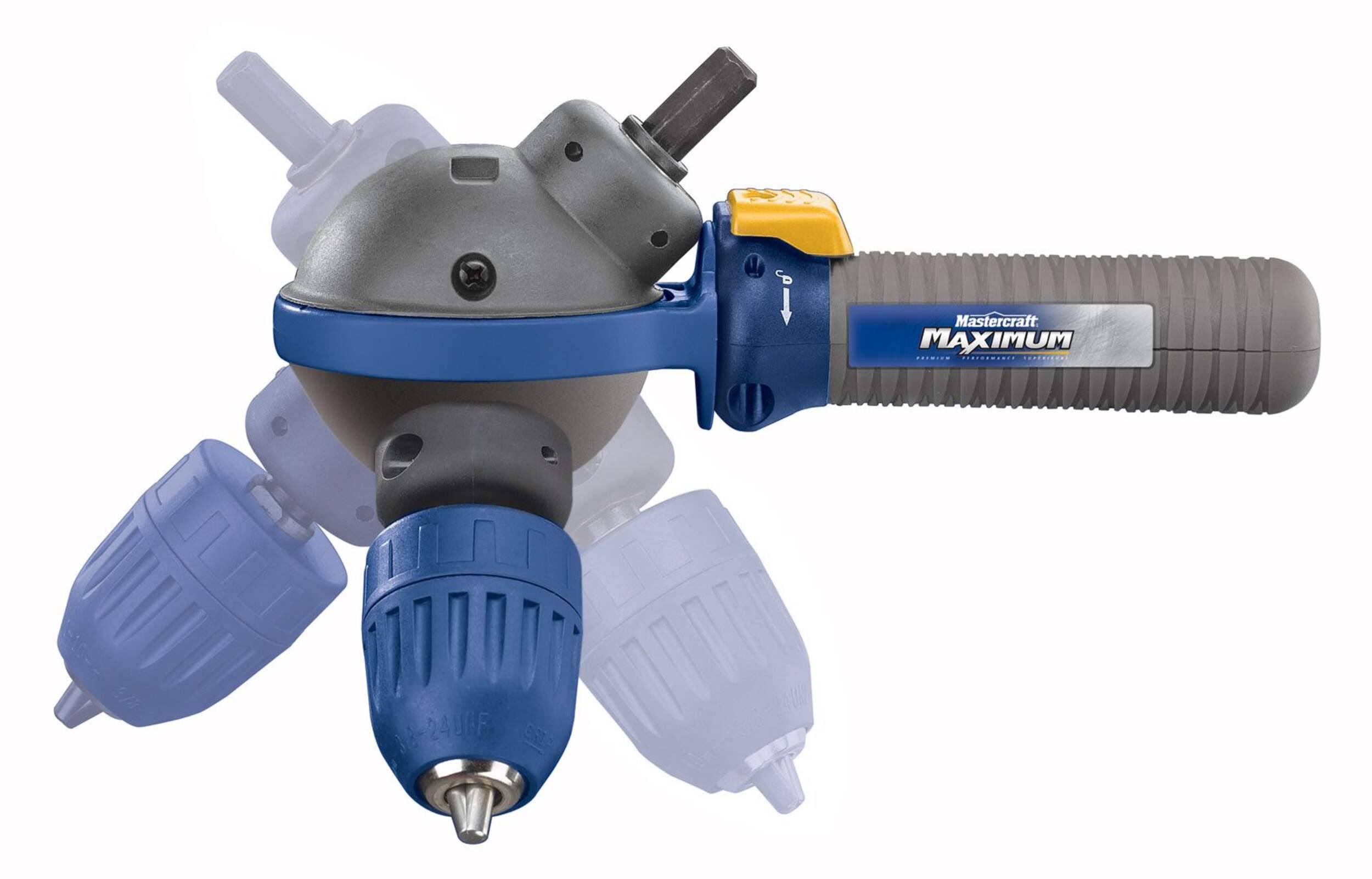 Unique body rotates 360° to give you the right angle in awkward spots and you don't have to fumble with a key to change bits