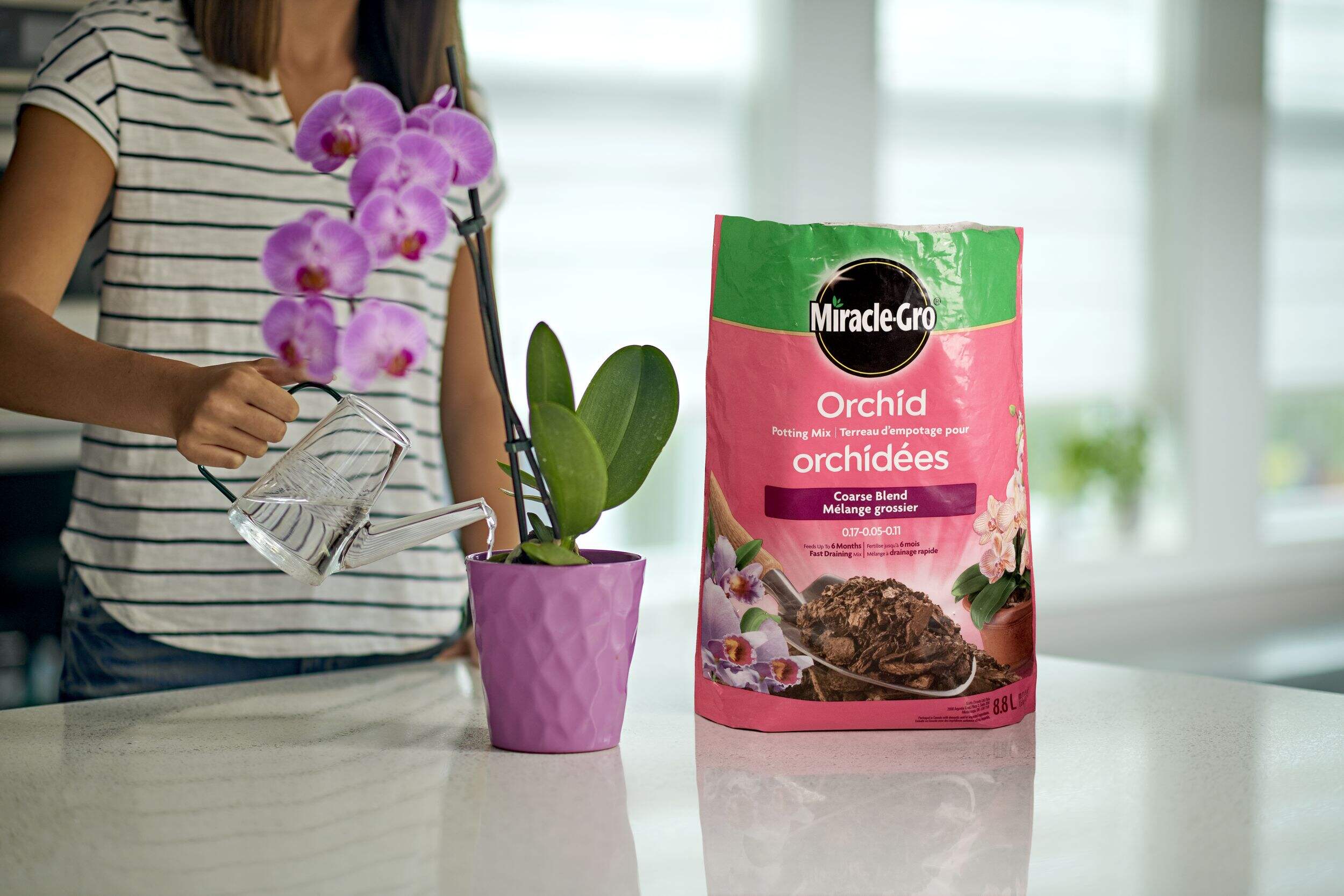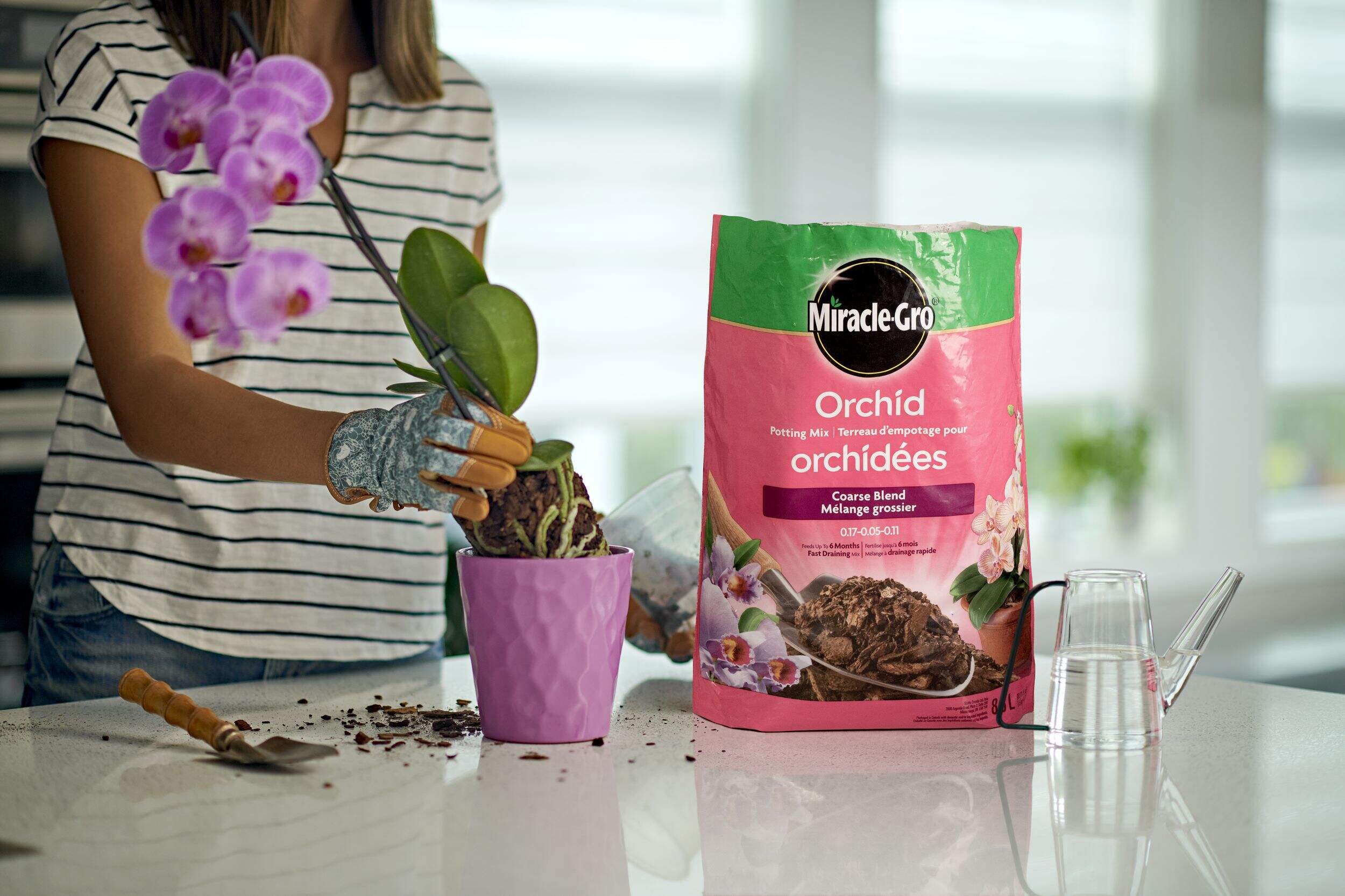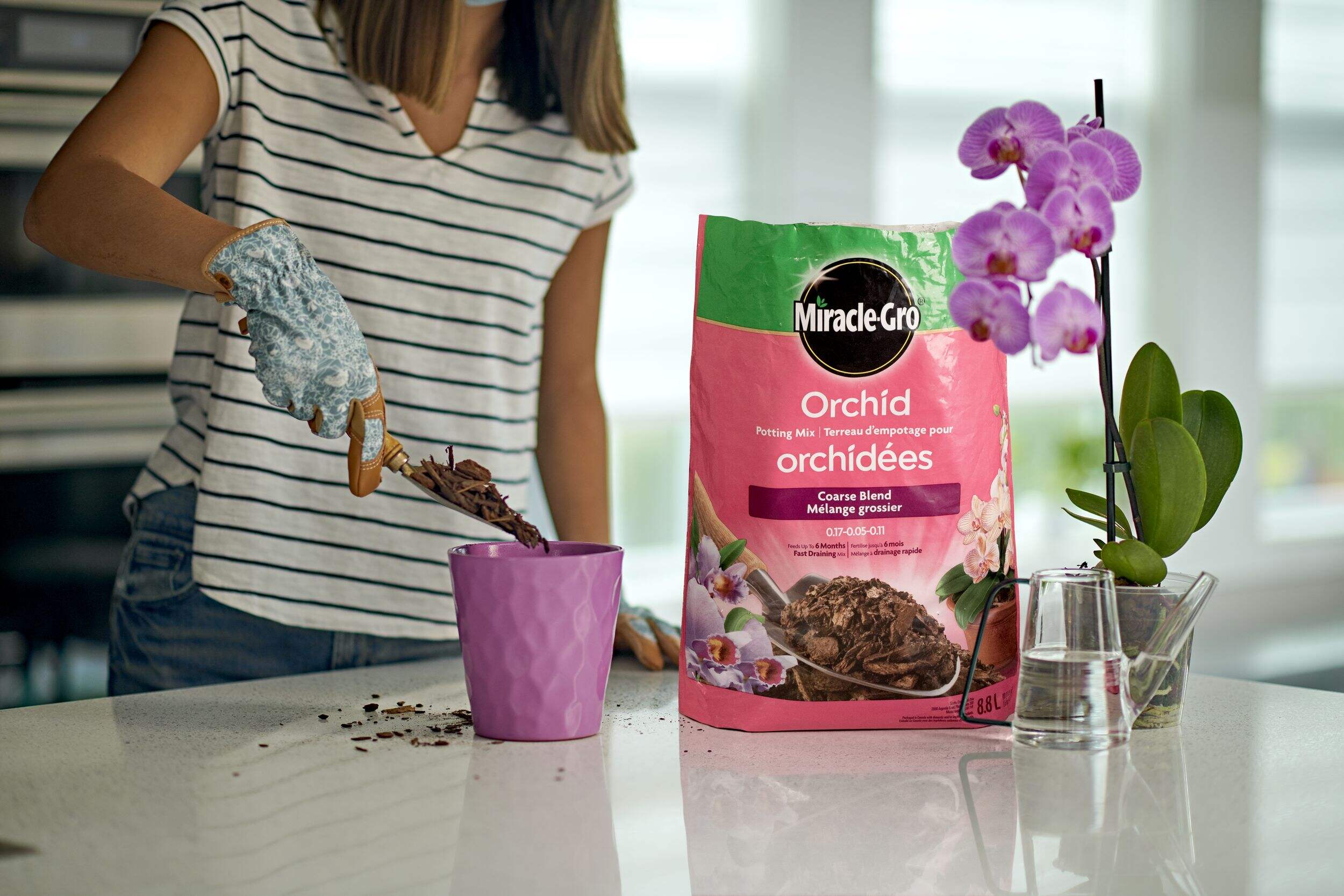 Beautiful and delicate to look at, orchids are easier to grow than you might think – especially when planted with Miracle-Gro® Orchid Potting Mix 0.17-0.05-0.11. This mix makes it easy to grow strong orchids with big, colourful blooms. Potted orchids require a highly specific environment: they can only tolerate so much moisture before their roots begin to rot. Apply too little moisture, though, and all the leaves will pucker. Miracle-Gro® Orchid Potting Mix 0.17-0.05-0.11 is specially formulated to give your orchids better airflow and faster drainage, creating the exact environment they need.