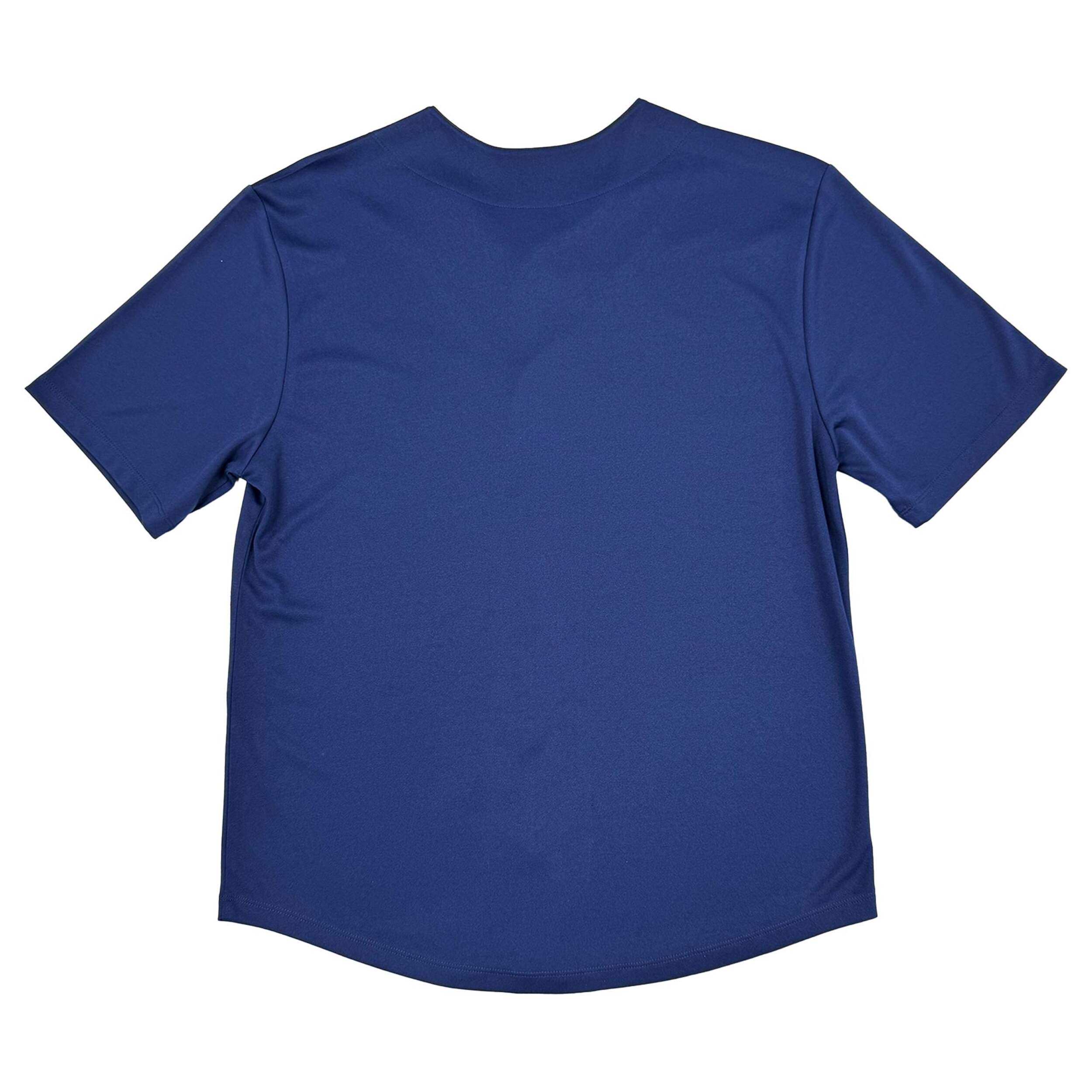Featuring a printed graphic of the classic Blue Jays logo across the chest, this 100% polyester navy MLB Toronto Blue Jays jersey is lightweight and comfortable. Available in a range of sizes, this MLB jersey is the perfect way to support your team whether at the game or watching at home. The short sleeves make it ideal for warmer weather, and the button front design provides an authentic baseball jersey look.