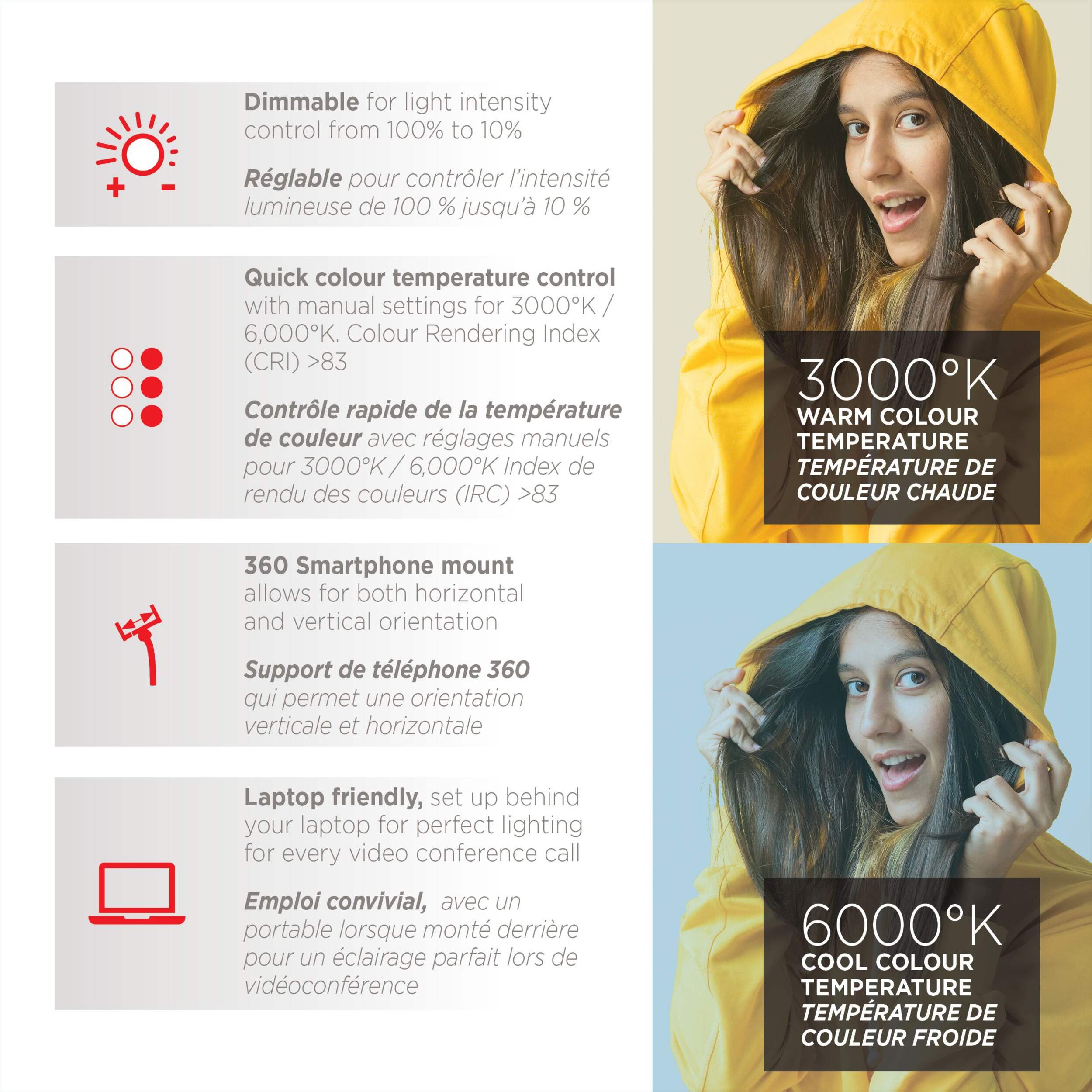 Laptop friendly, set up behind your laptop for perfect lighting for every video conference call