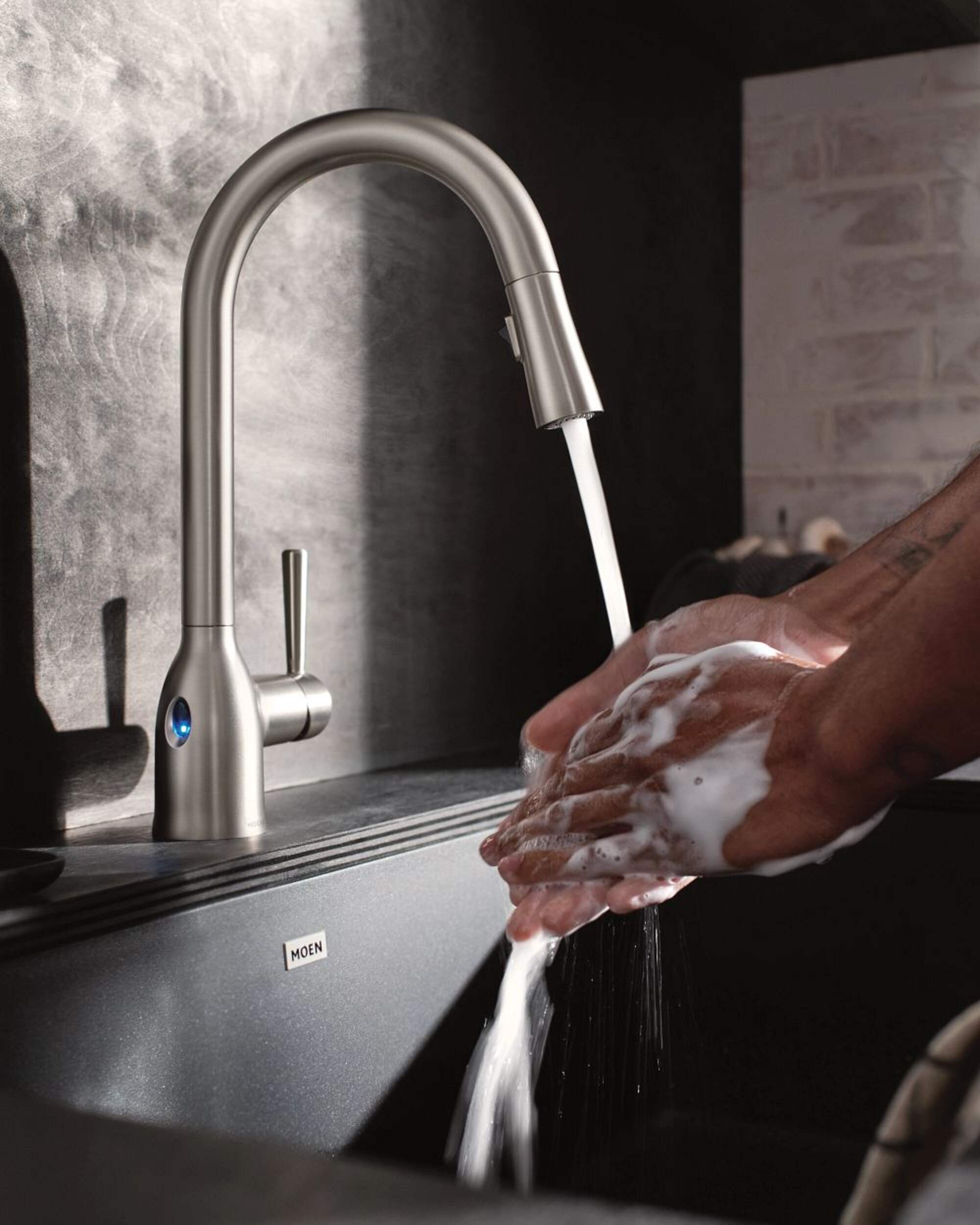 Moen Powerclean Reflex Pulldown Kitchen Faucet with Motionsense features a Spot Resist™ stainless finish that resists fingerprints and water spots for a cleaner looking kitchen