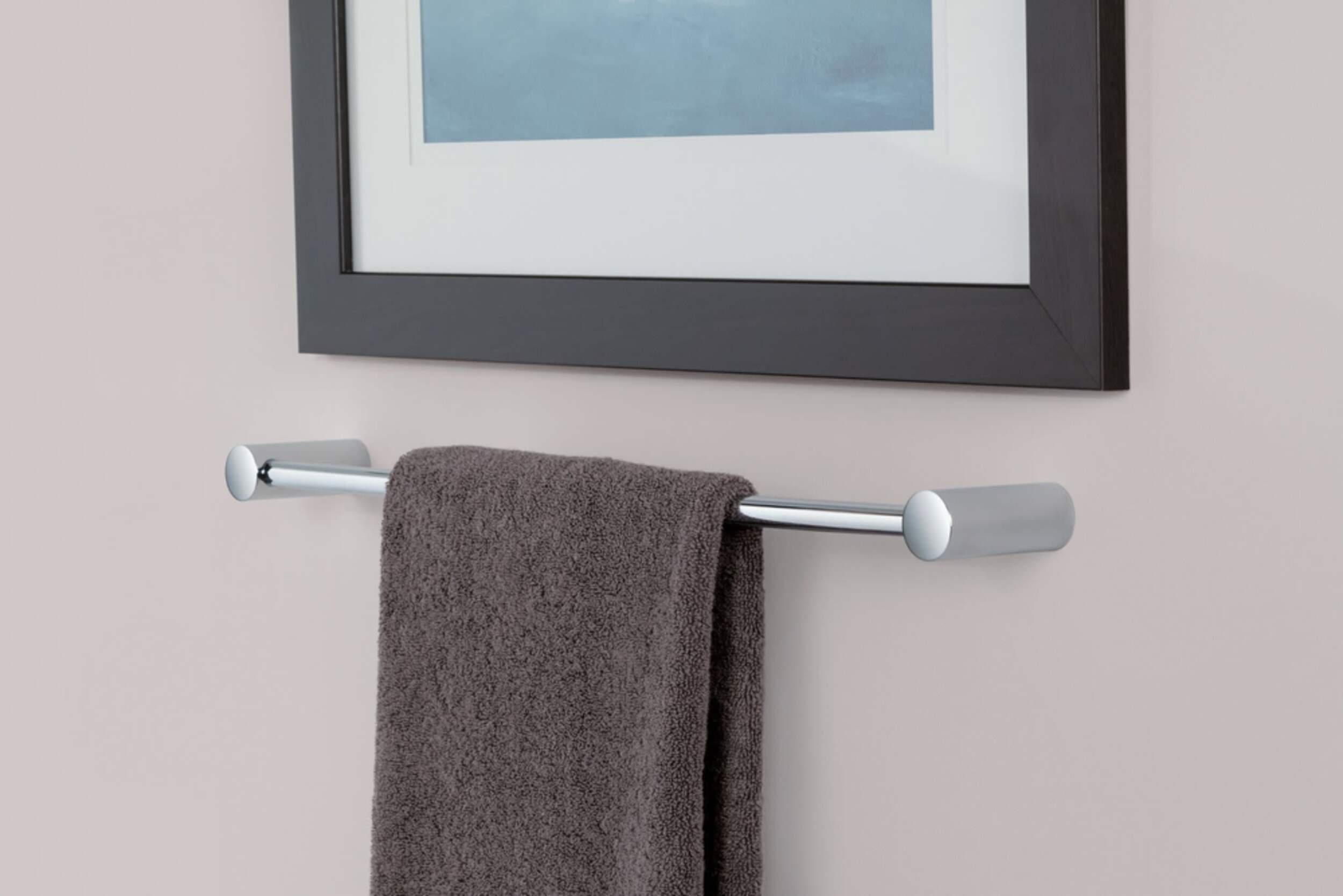 Moen Align Towel Bar features a chrome finish that is highly reflective for a mirror-like look that works with any decorating style