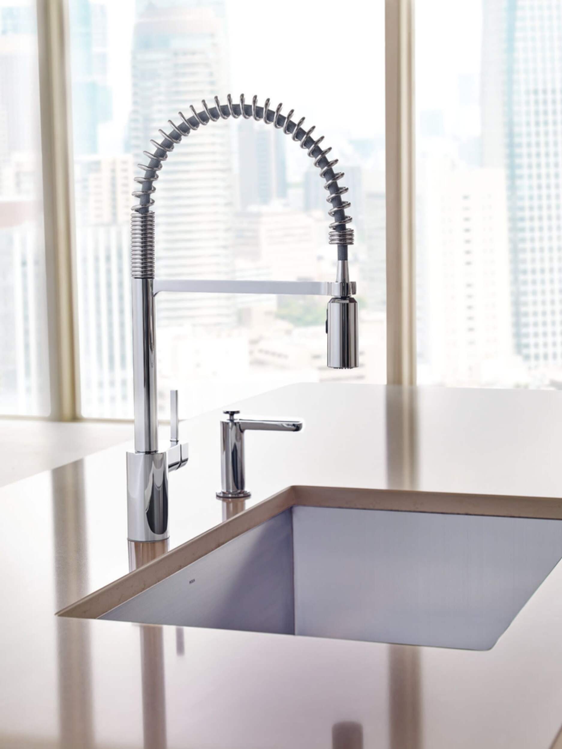 Equipped with the Reflex™ system for smooth operation, easy movement and secure docking of the pulldown/pullout spray head