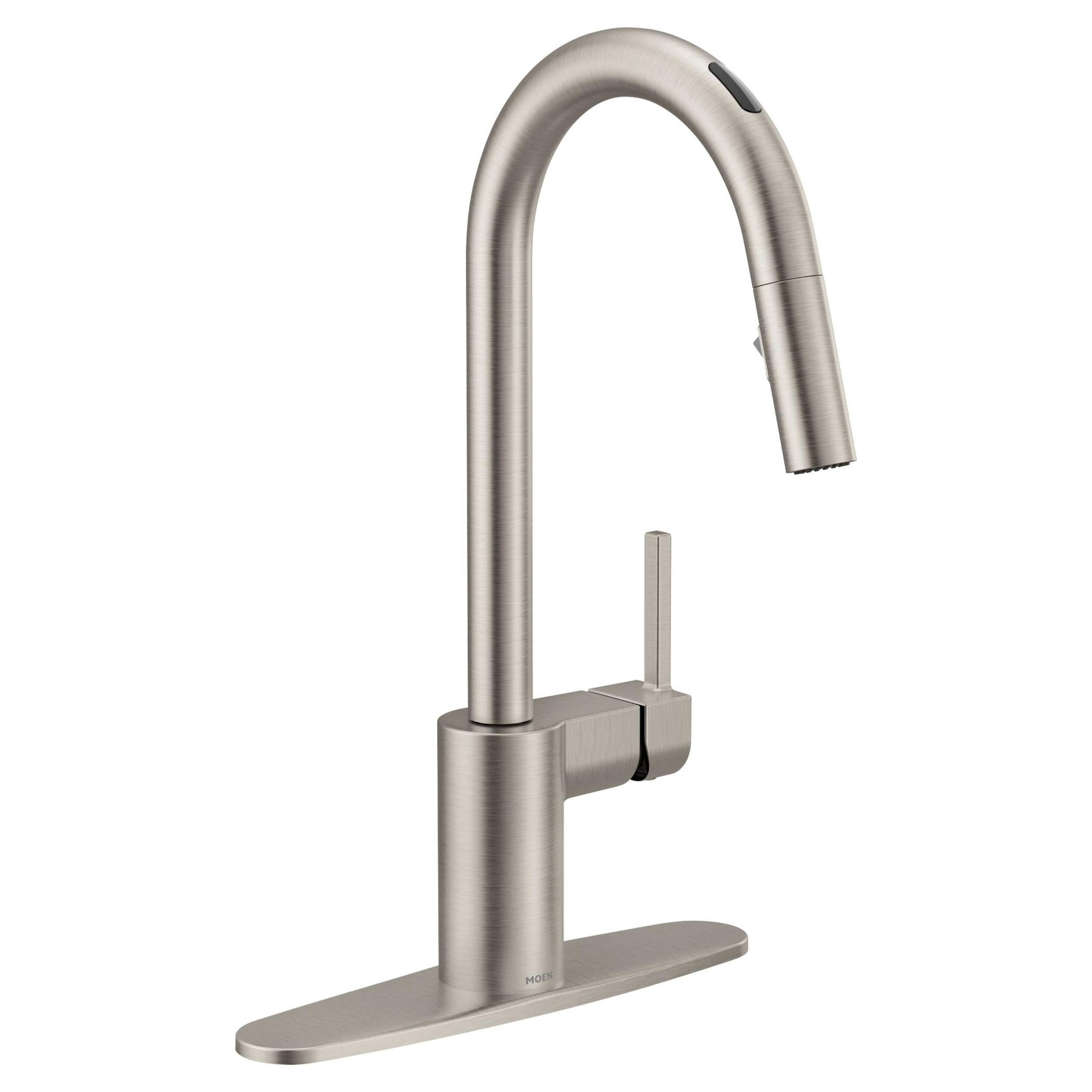 Moen Align U Smart 1-Handle Pulldown Kitchen Faucet features four methods of control that you can mix and match, independent of the handle position: voice, app, hands free, and manual