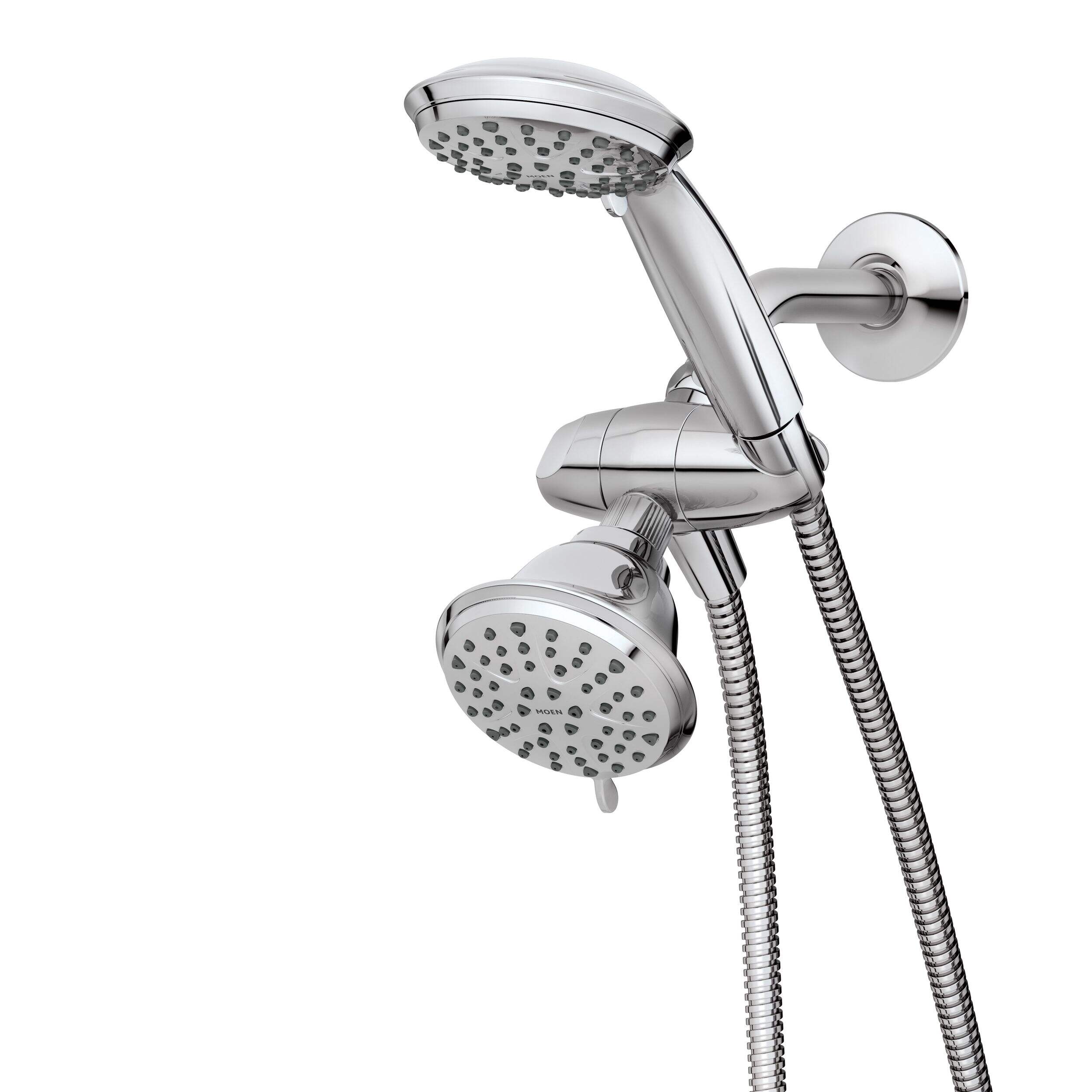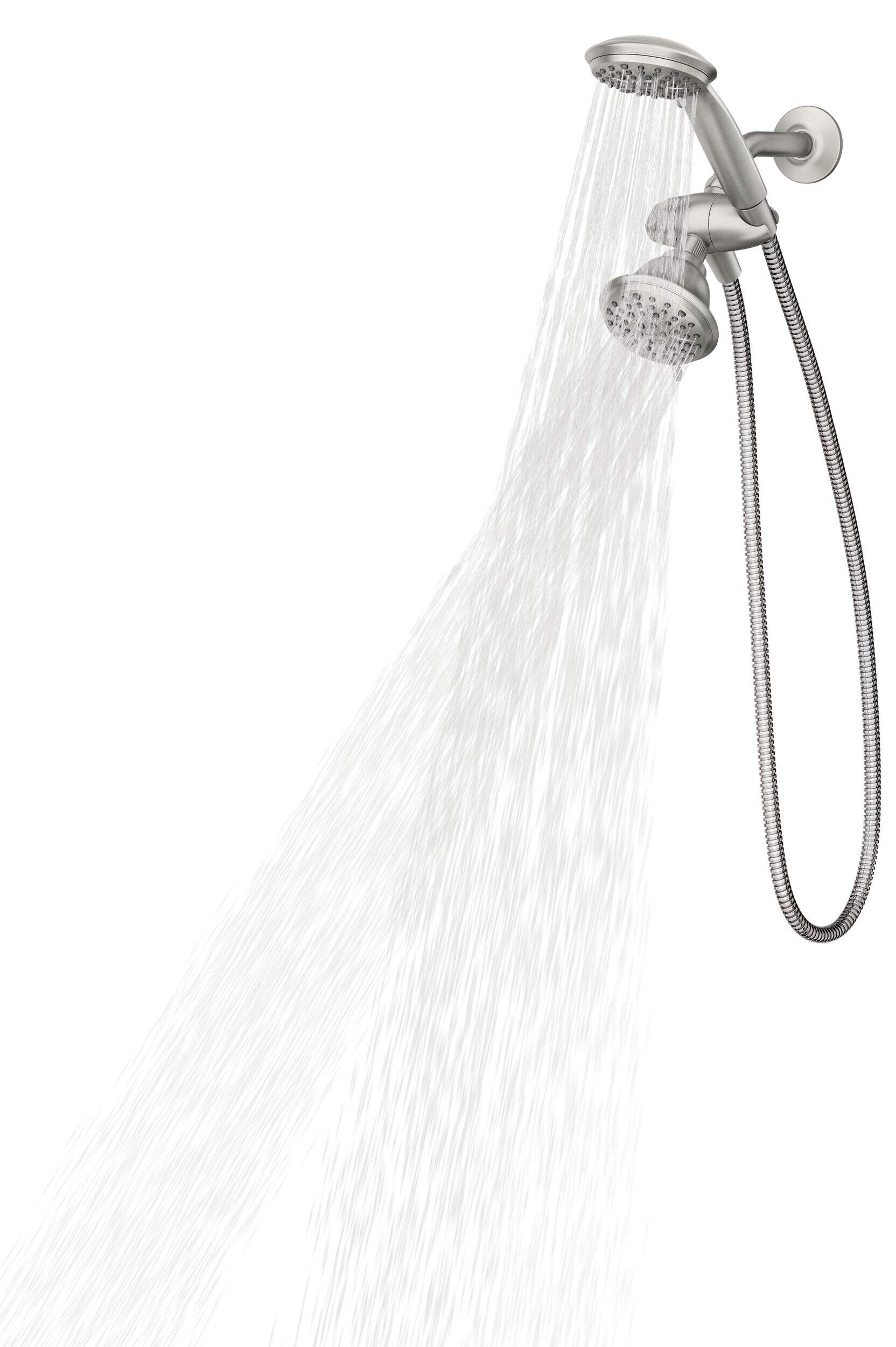 Upgrade your shower with the Moen Attune™ Combination 6-Setting Hand Shower & 8-Setting Wall Mount Shower. Featuring a sleek chrome finish that complements any bathroom style, this system combines beauty with functionality. The hand shower includes 6 spray settings, while the 4.75" diameter wall mount showerhead offers 8 functions, including pause, downpour, and massage, for a truly customized shower experience.