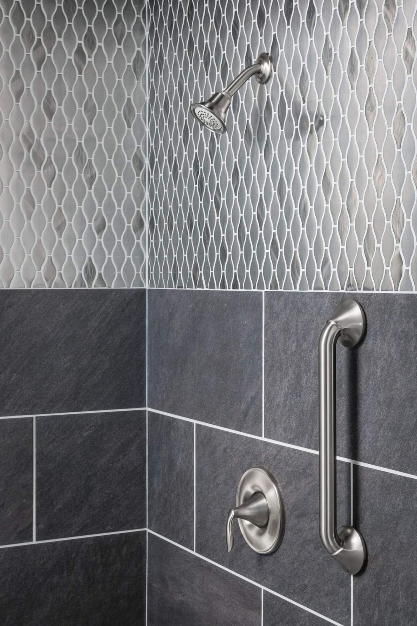 Moen EVA 1-Handle Posi-Temp Shower Trim Kit provides a lightly brushed warm-grey metallic look