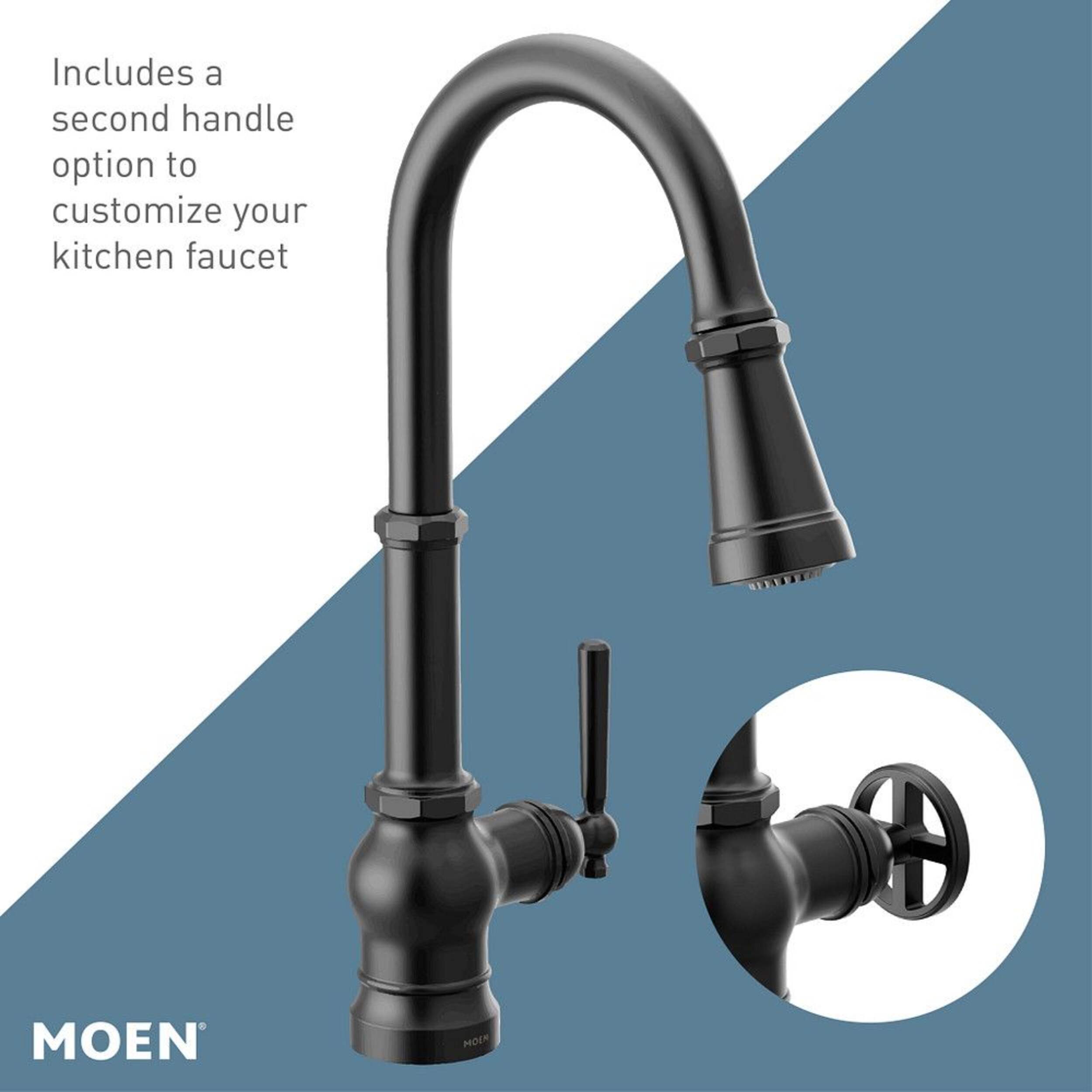 Moen Paterson 1-Handle Pulldown Kitchen Faucet features a matte black finish that is the perfect complement to modern spaces