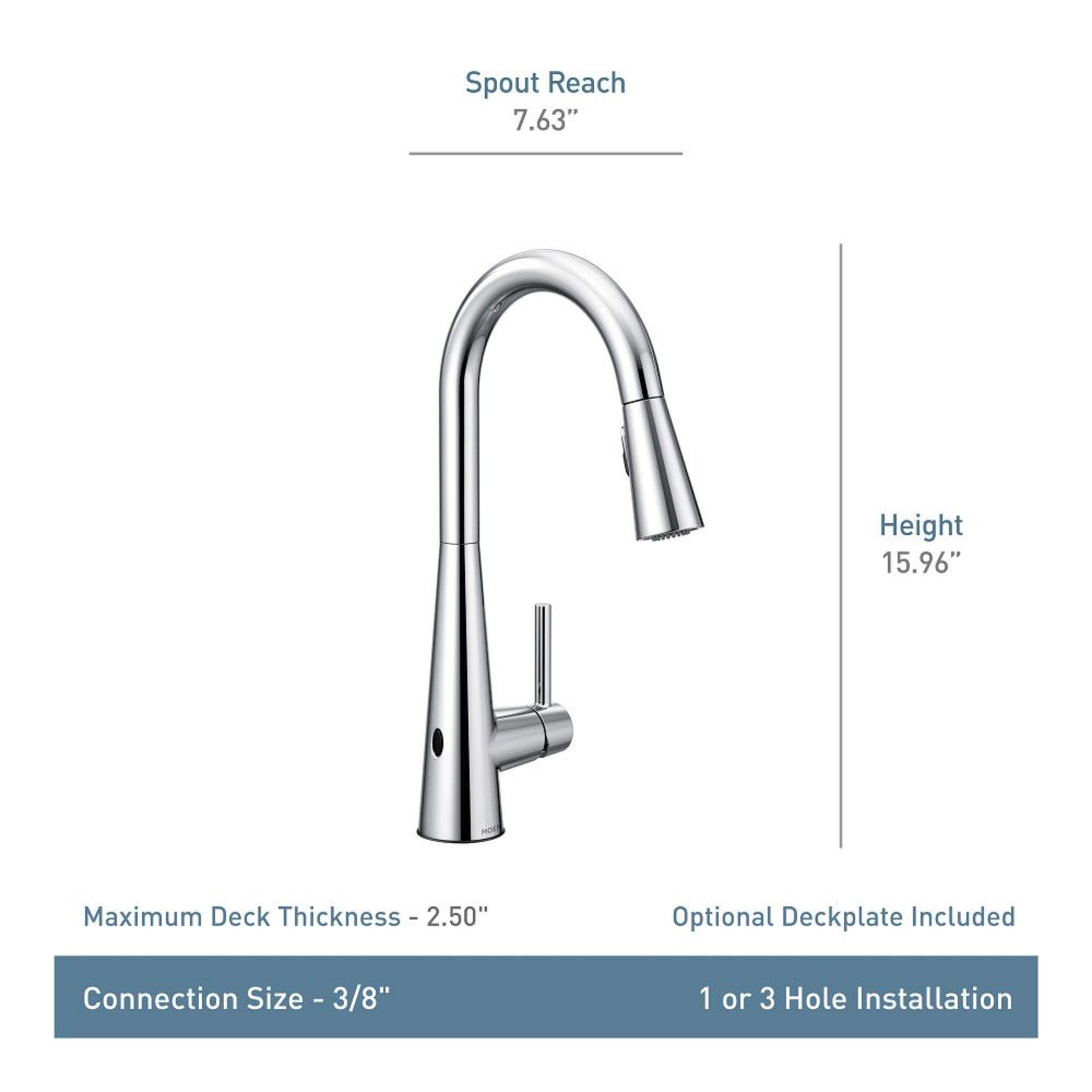 Moen Sleek U Modern 1-Handle Pulldown Kitchen Faucet features an oil rubbed bronze finish that delivers a rich, dark brown with striking light and dark accents