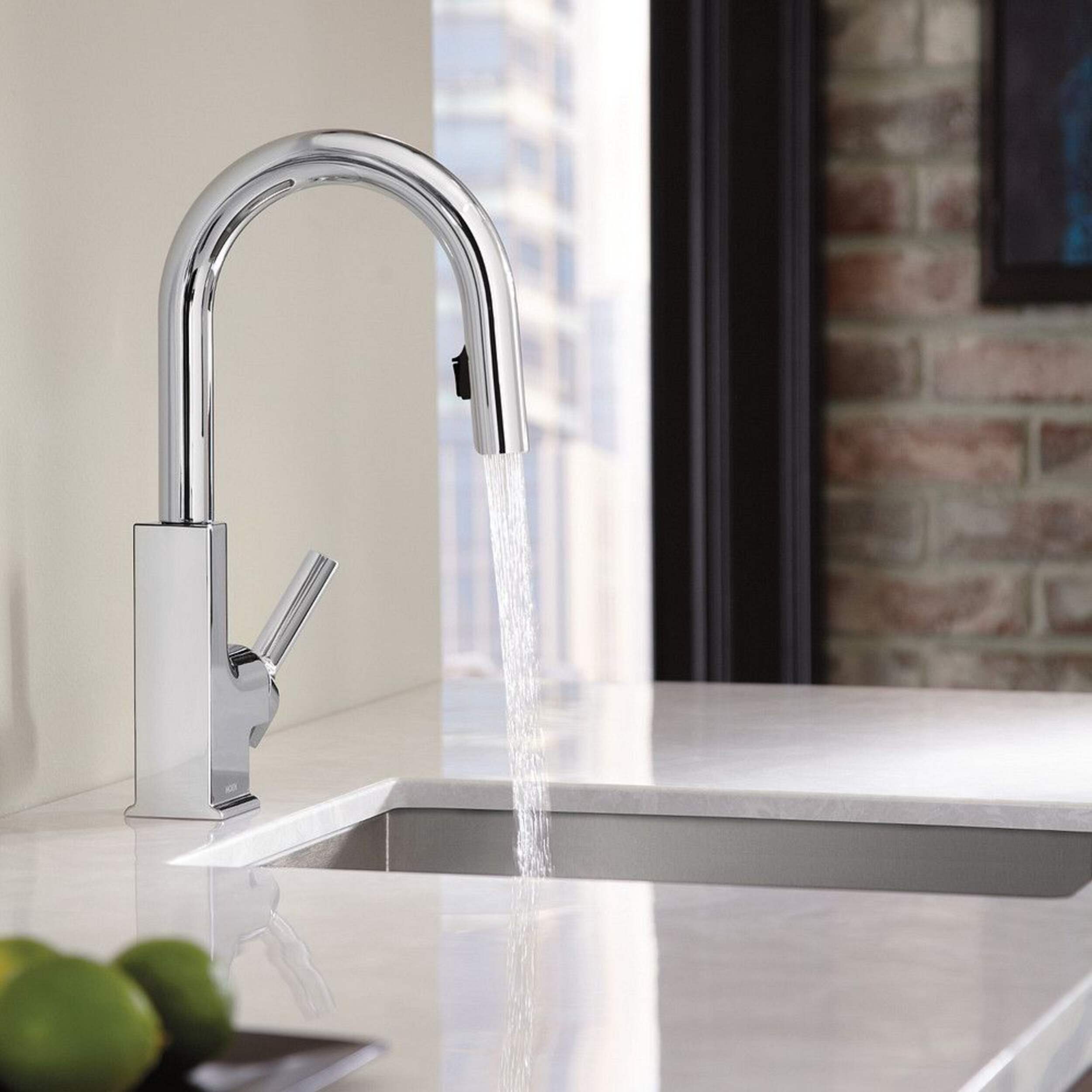 An impeccably put-together look keeps Modern conveniences concealed as STo's pulldown wand blends seamlessly into the slim faucet spout. The faucet's precision lines from top to bottom create a style that can be carried throughout contemporary kitchens.