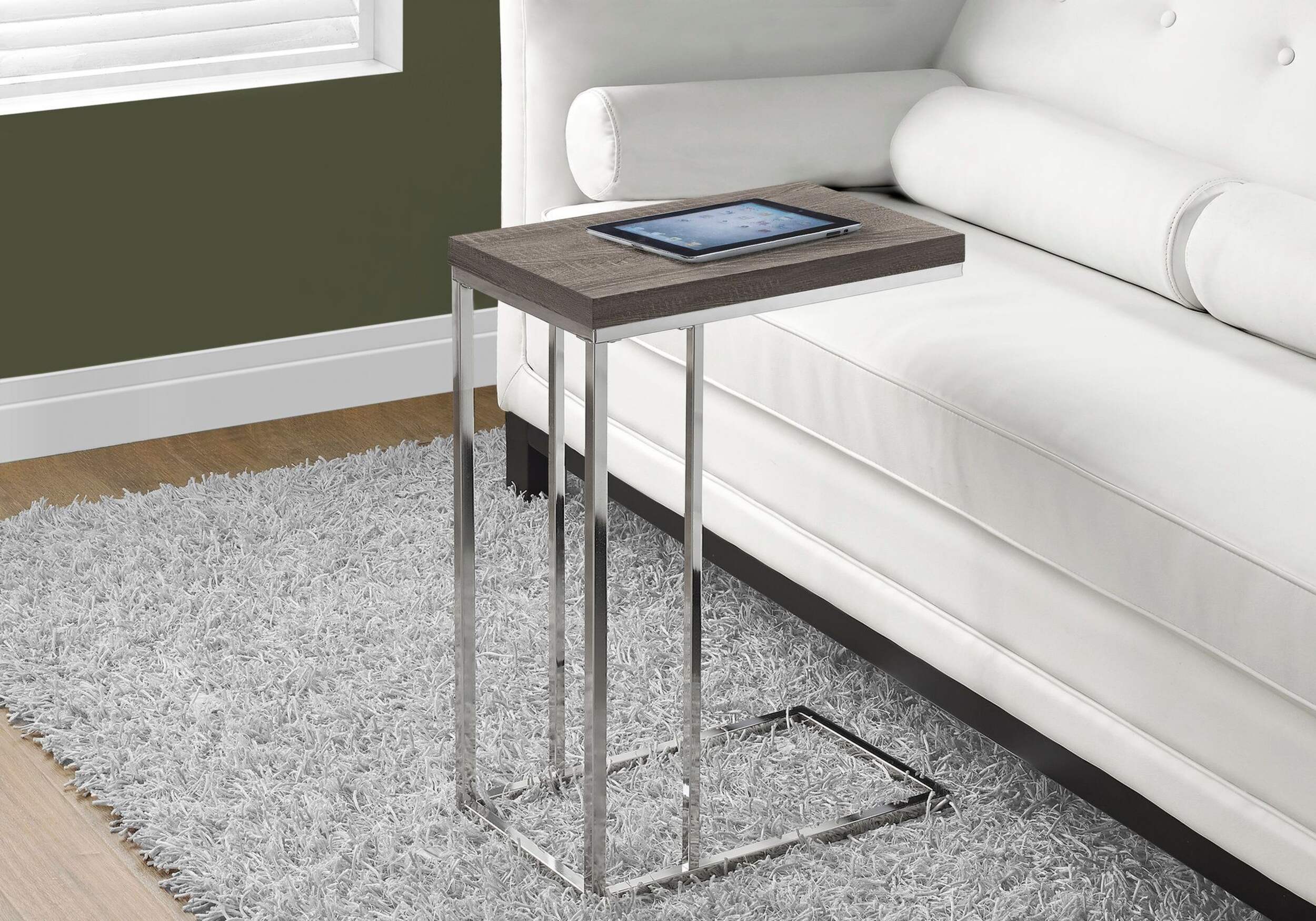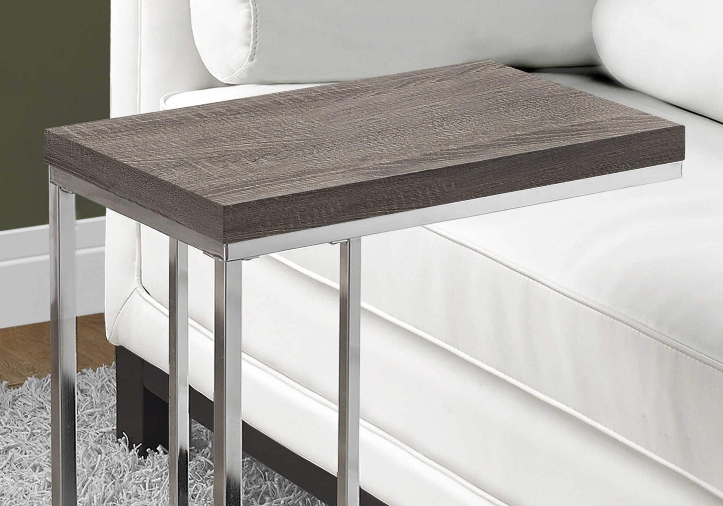Monarch C-Shaped End Table with Chrome Legs lets you eat and drink while you relax on your couch