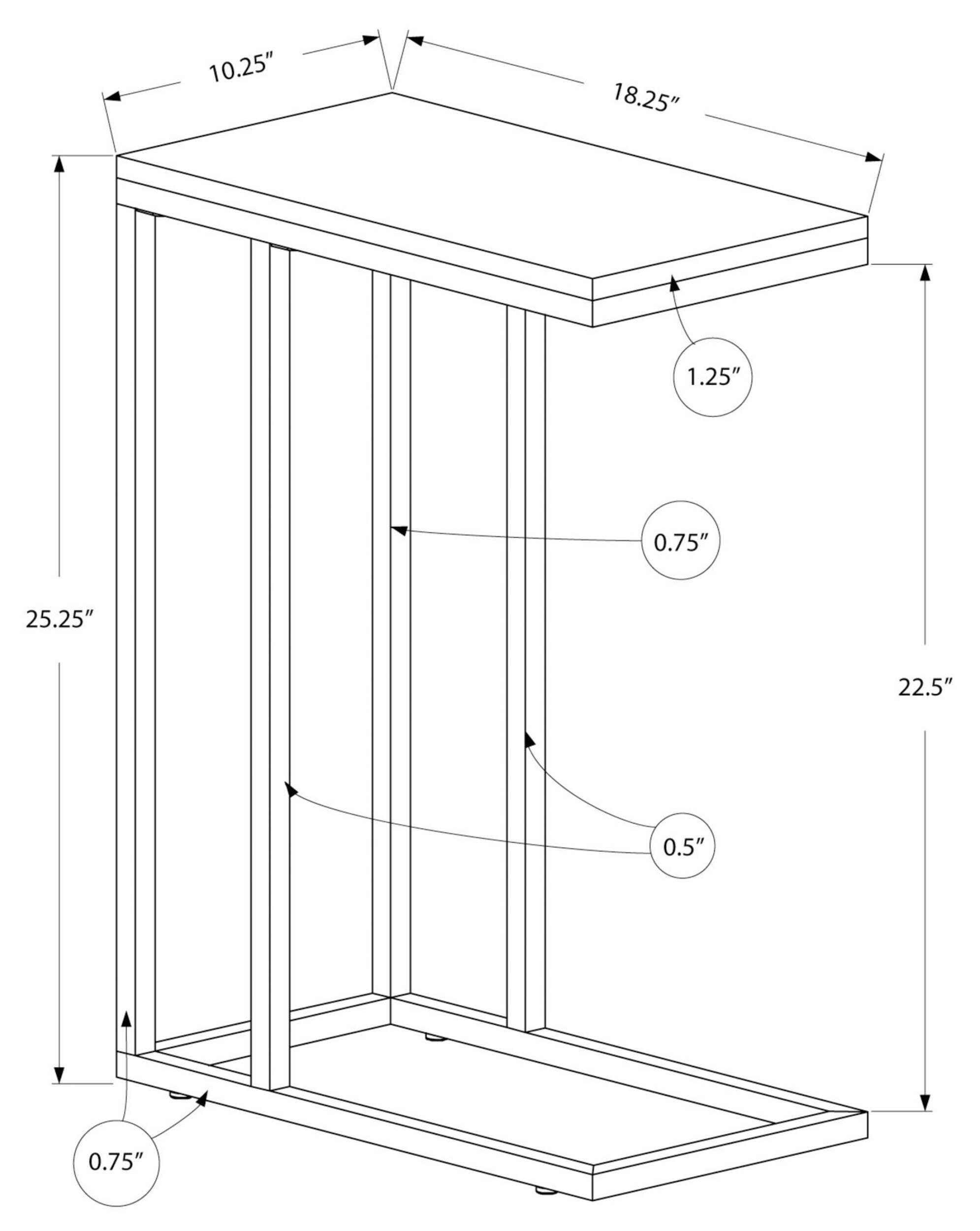 Couch Table Dimensions: 18 L x 10 W x 25"H (45.7 x 25.4 x 63.5 cm)