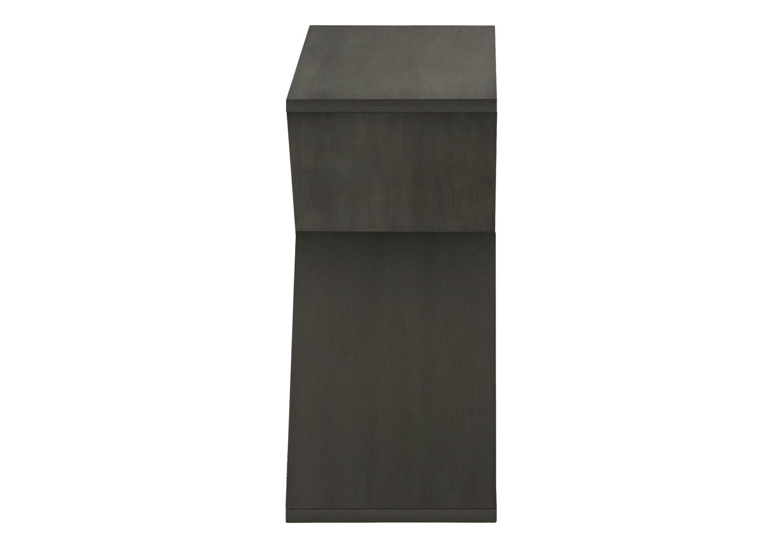 This contemporary 24 inch high accent table is perfect to add a touch of fashionable style with function to your living space. Finished in a sleek dark green veneer with a space saving design, this table is constructed with a slanted and bottom shelf to creatively store books or magazines. Place a small lamp, decorative object, or essentials on the spacious top for easy access. Set this versatile table next to a sofa or chair as an end or side table in your living room or bring it into a bedroom as a unique nightstand with modern styling. Easy to assemble with illustrated instructions and all hardware with floor protectors included, you can quickly set up this accent table and start enjoying its benefits in no time.