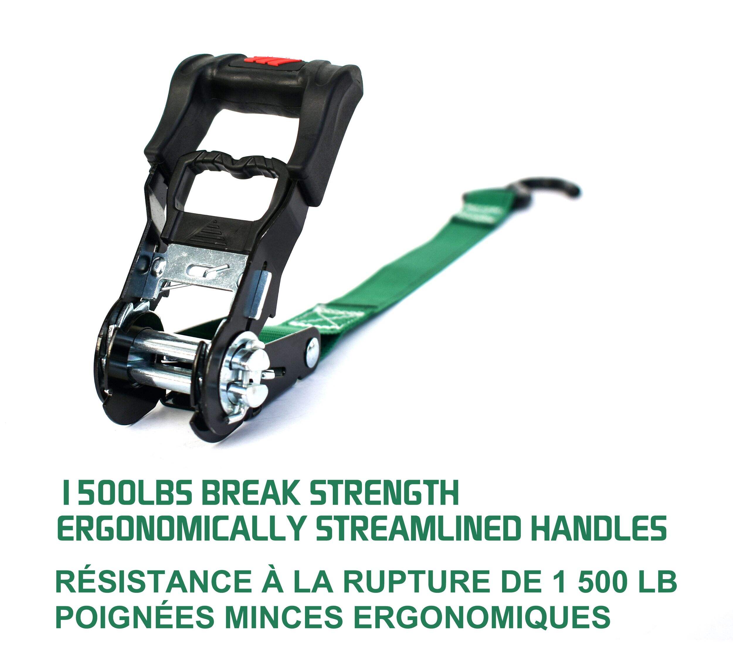 Keep your cargo secure with the MotoMaster Standard Duty Ratchet Strap. With a 1,500-lb (689 kg) break strength and 500-lb (226.7 kg) safe work load, this ratchet tie-down strap is built for rugged load handling. The weatherproof ratchet strap is quick and easy to use – no awkward feeding of straps, or need to tie off ends or remove webbing from the ratchet. You'll appreciate how the padded grip and thumb release give you more comfort and leverage.