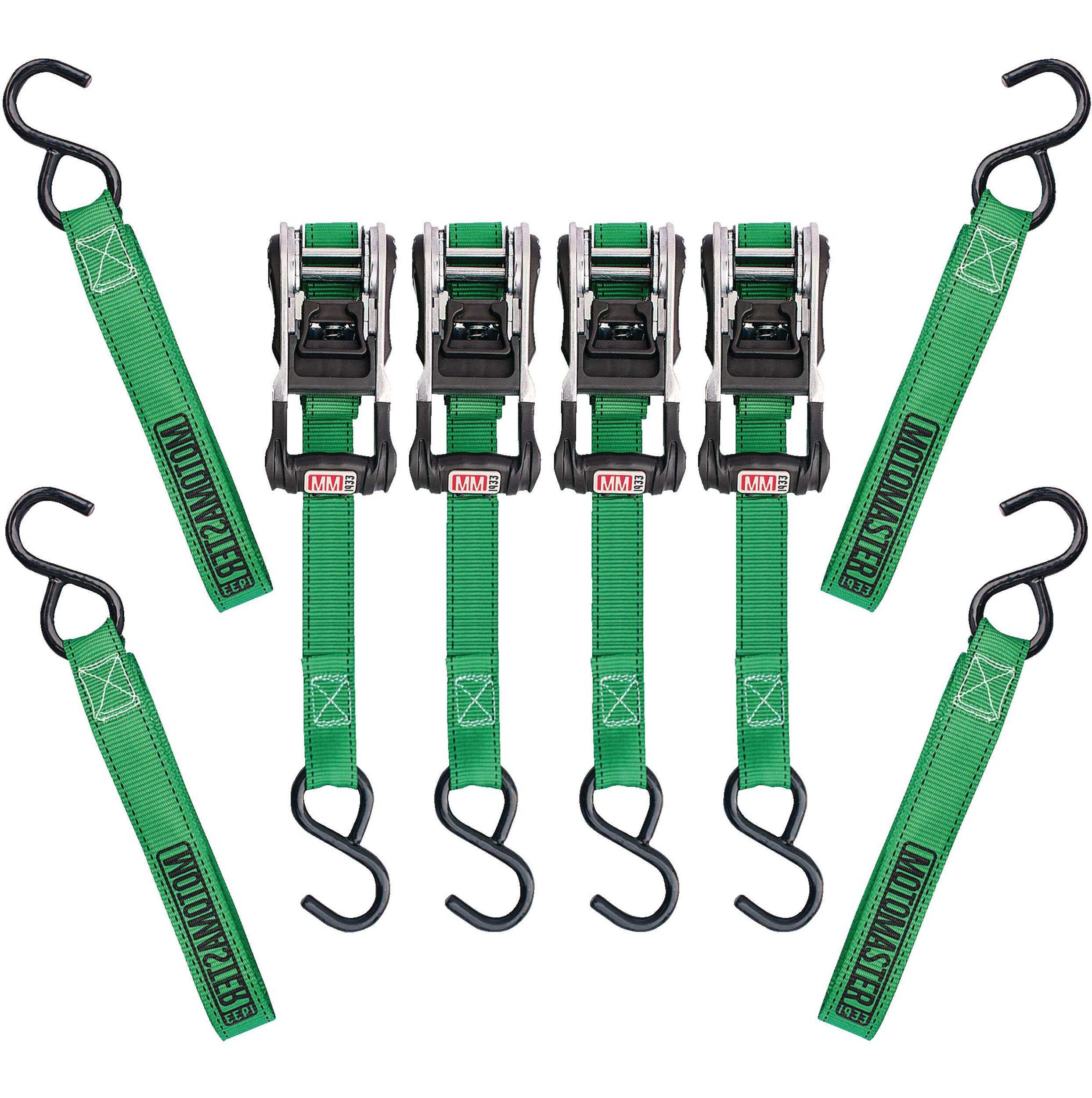These MotoMaster 1,500-lb Ratchet Tie Down Straps are the perfect solution for securing heavy cargo loads for transportation. Measuring 1-in x 14-ft, these tie-down straps are ideal for fastening loads on vehicle rooftops, truck cargo beds and small trailers. The padded D-handle ensures a comfortable grip while tightening. These weatherproof ratchet straps are UV-resistant and engineered to withstand the toughest conditions.