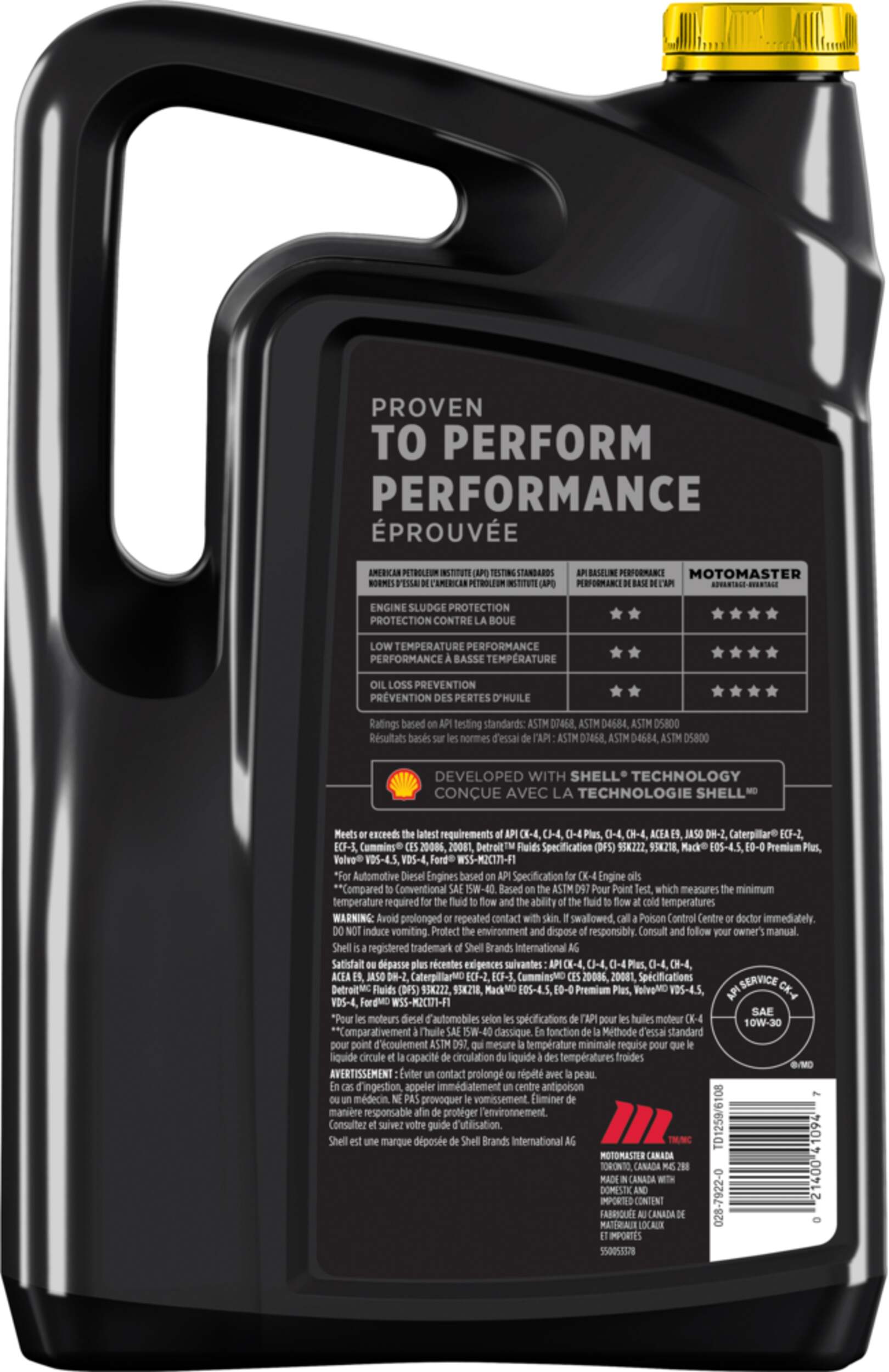 MotoMaster 10W30 Semi-Synthetic Diesel Engine Oil is developed with Shell Technology. This heavy-duty oil is engineered to provide maximum performance for engines operating in severe conditions and running on ultra-low sulphur diesel fuel.