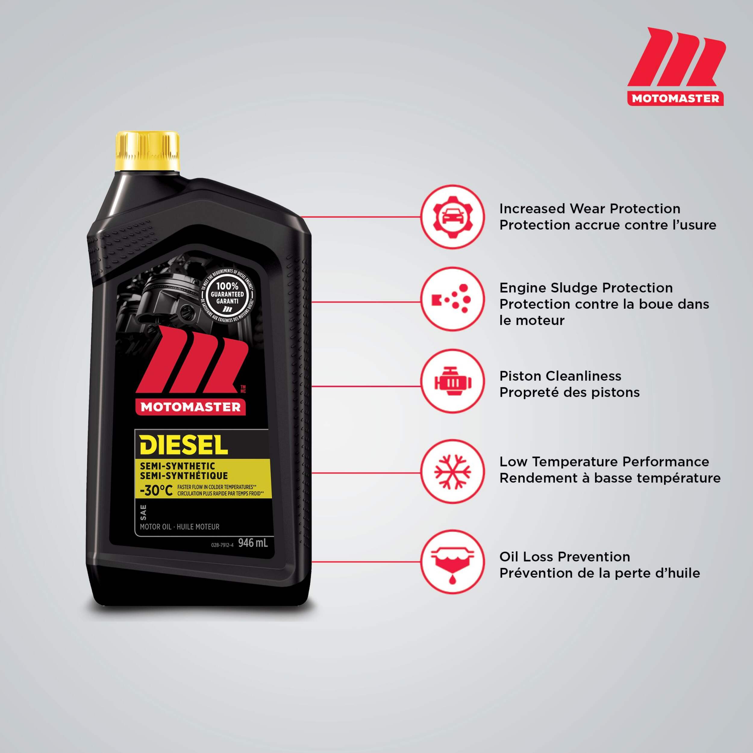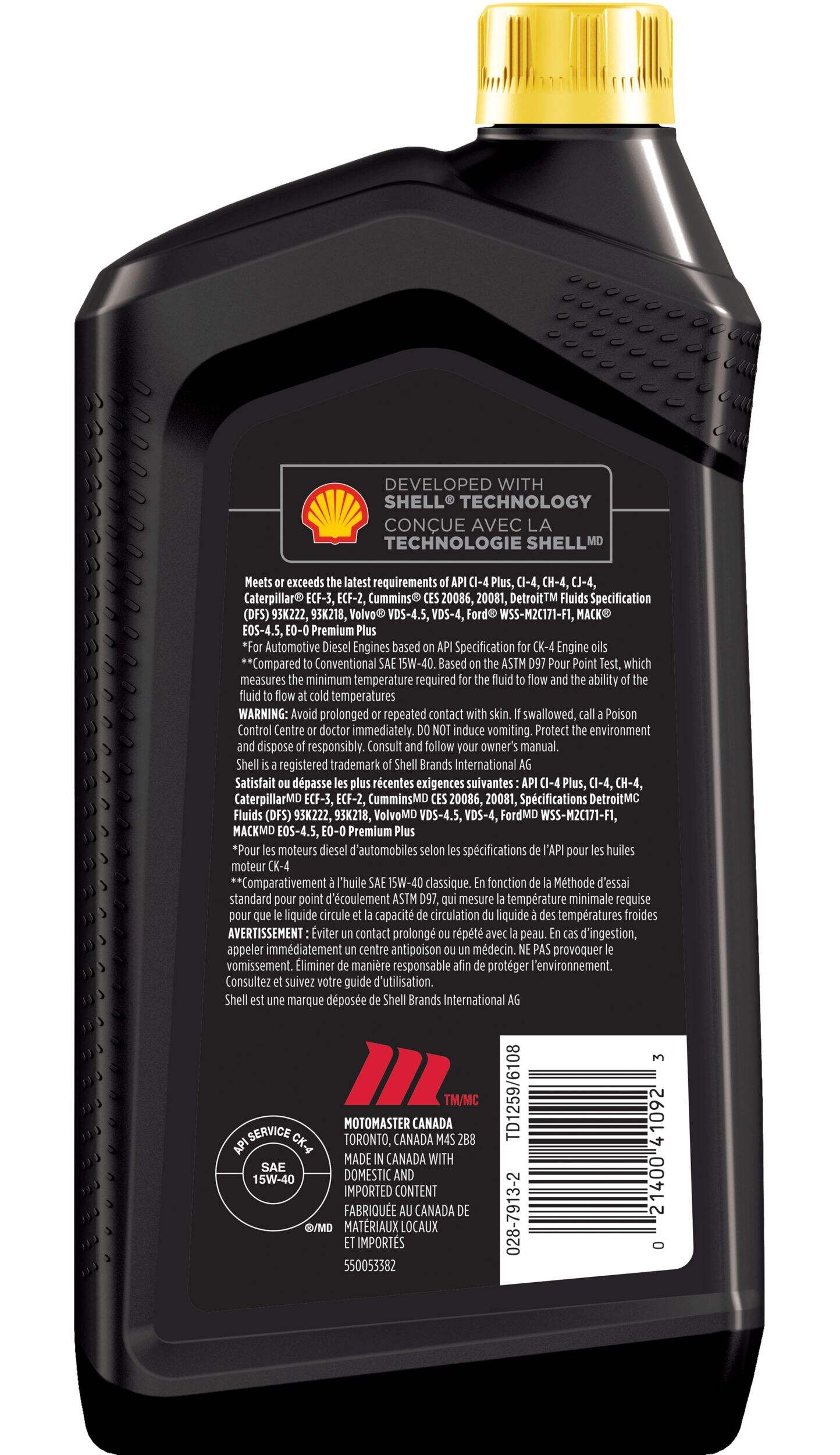 MotoMaster 15W40 Semi-Synthetic Diesel Engine Oil is a heavy-duty oil developed with Shell Technology. This powerful fluid is engineered to provide maximum performance for engines operating in the most severe conditions while running on ultra-low sulphur diesel fuel.