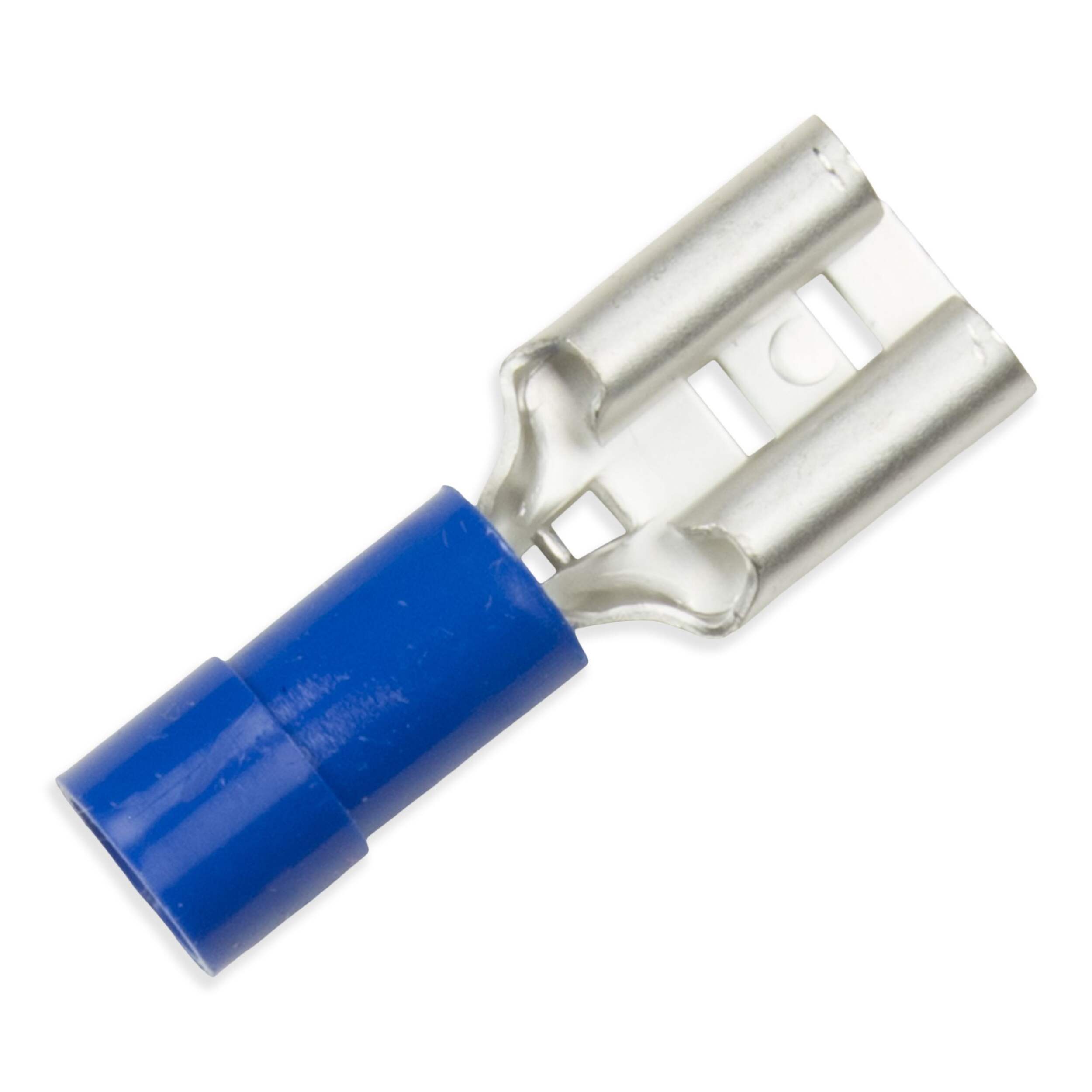 The MotoMaster 16-14 AWG Automotive Female Quick Disconnect, .250-in, 6-pk, is ideal for wiring upgrades or repairs on your vehicle. With their corrosion-resistant electro-tin plating and funnel entry design, inserting wire is fast and hassle-free. Multiple grooves inside the full-sized barrel grip electrical wire securely to prevent loosening over time and vibrations. A locating ridge and vinyl sleeve support the insulation during crimping to ensure a strong, dependable connection. At an affordable price per terminal, this quick disconnect allows automotive enthusiasts to handle various electrical jobs with reliable parts. Suitable for both commercial and DIY applications, the female disconnect terminates cables efficiently on automotive accessories and under-hood components.