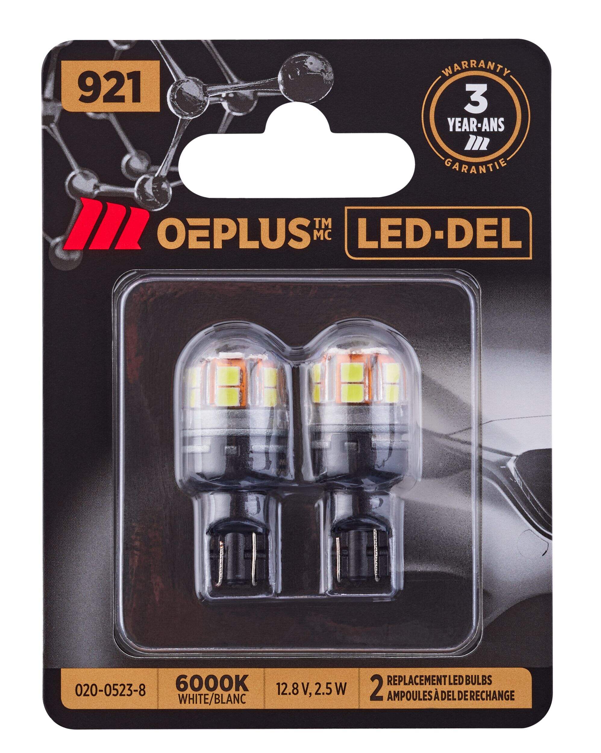 Improve your nighttime visibility with the MotoMaster 921 OEPLUS® LED Mini Bulbs. This LED light shines big with 6000K bright white light which pierces through dark roads and dimly-lit alleyways. Instant on-off functionality eliminates any warm-up delay, so you’ll see and be seen right away. With LED technology that outlasts traditional halogen bulbs, you’ll save on energy and replace headlight bulbs less often. These bulbs easily install into the headlight socket for a brilliant upgrade. Built to take on tough Canadian driving conditions, these LED mini bulbs come with a 3 year warranty so you can experience reliable, radiant lighting.