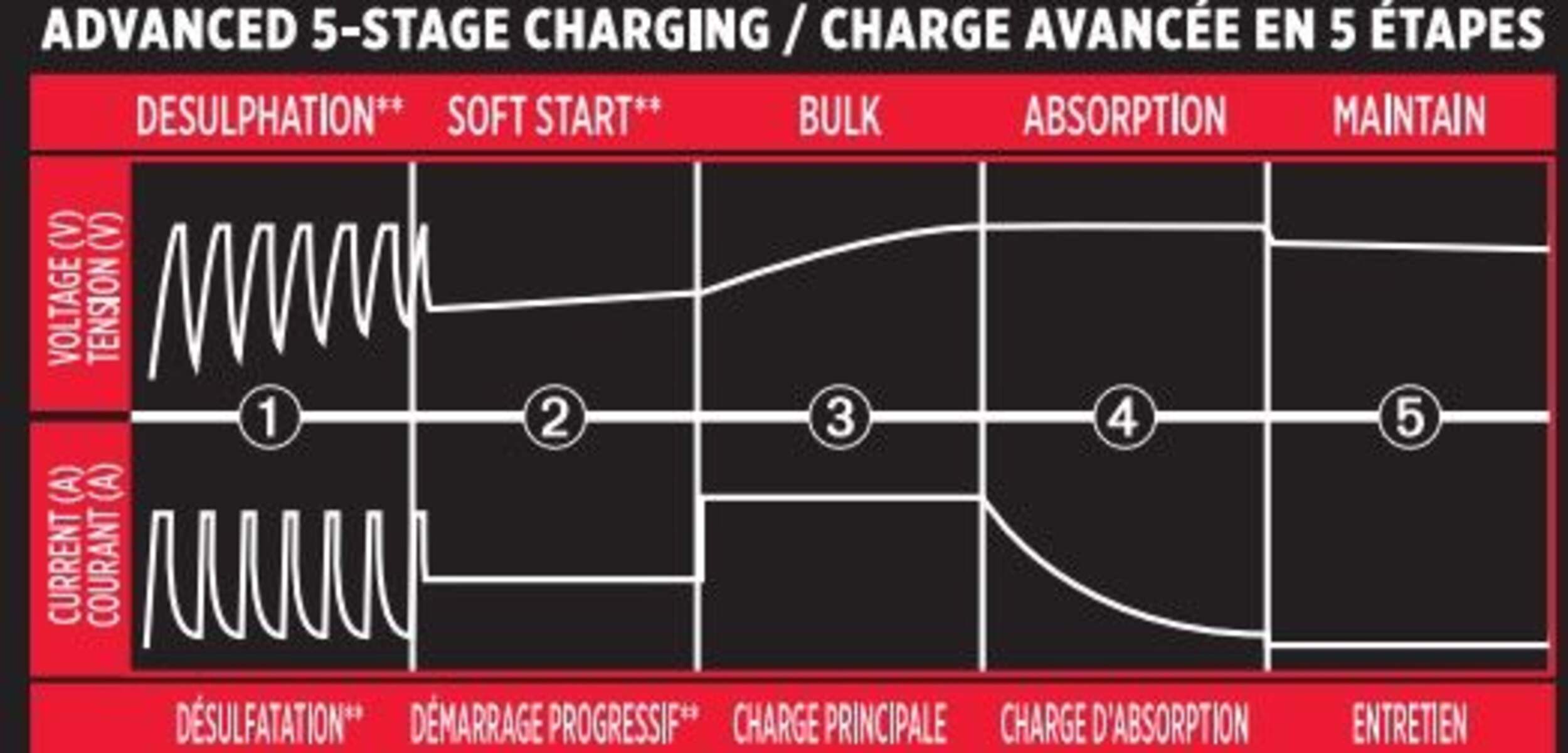 Features a fully automatic, microprocessor-controlled 5-step charging process for a safe, fast and thorough battery charge