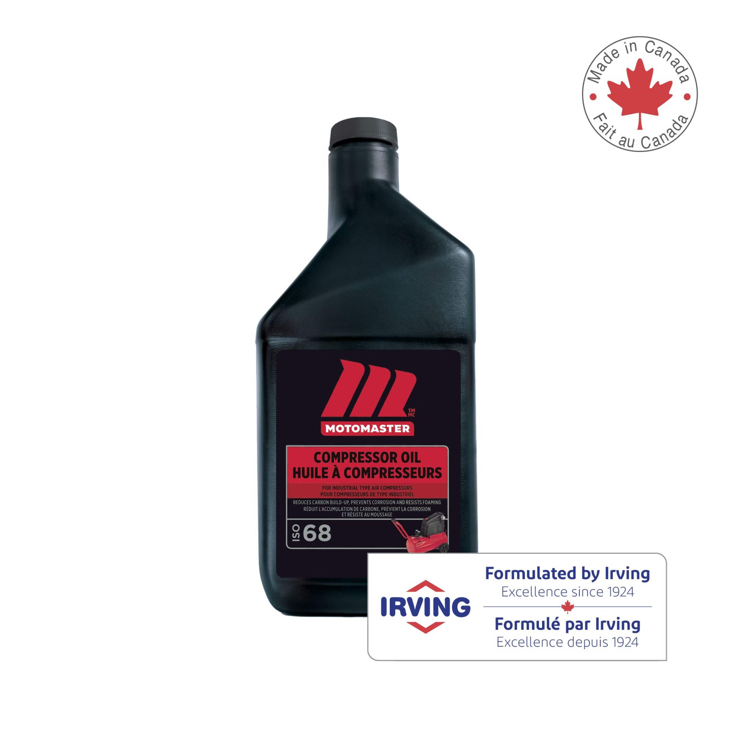 The MotoMaster Compressor Oil for Industrial Type Air Compressors ISO 68, 946-mL, is an ideal solution for your machinery to operate at peak performance. It is specially formulated to protect industrial air compressors and vacuum pumps from carbon buildup, corrosion, and overheating. At 32 fluid ounces, this oil provides complete coverage for most mid-sized compressors, lubricating cylinders, valves, pistons, and bearings to ensure seamless operation in high-demand environments. This compressor oil meets the stringent ISO 68 rating, indicating its ability to withstand high temperatures without breaking down. This oil excels in reducing friction and preventing rust, keeping your compressor in working order for longer. With its anti-foaming agents, this oil delivers steady performance without air pockets that could reduce efficiency. By minimizing repairs and preventing premature wear, this air compressor oil allows your machinery to work as hard as you do.