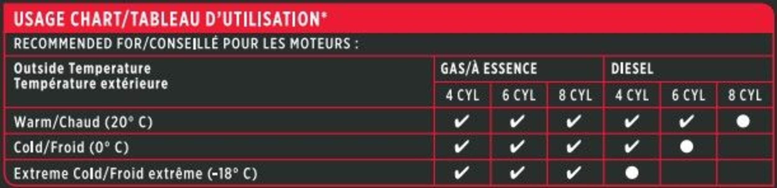 Jump starts dead batteries in vehicles with engines up to 5.0 L (gas) and 2.5L (diesel)