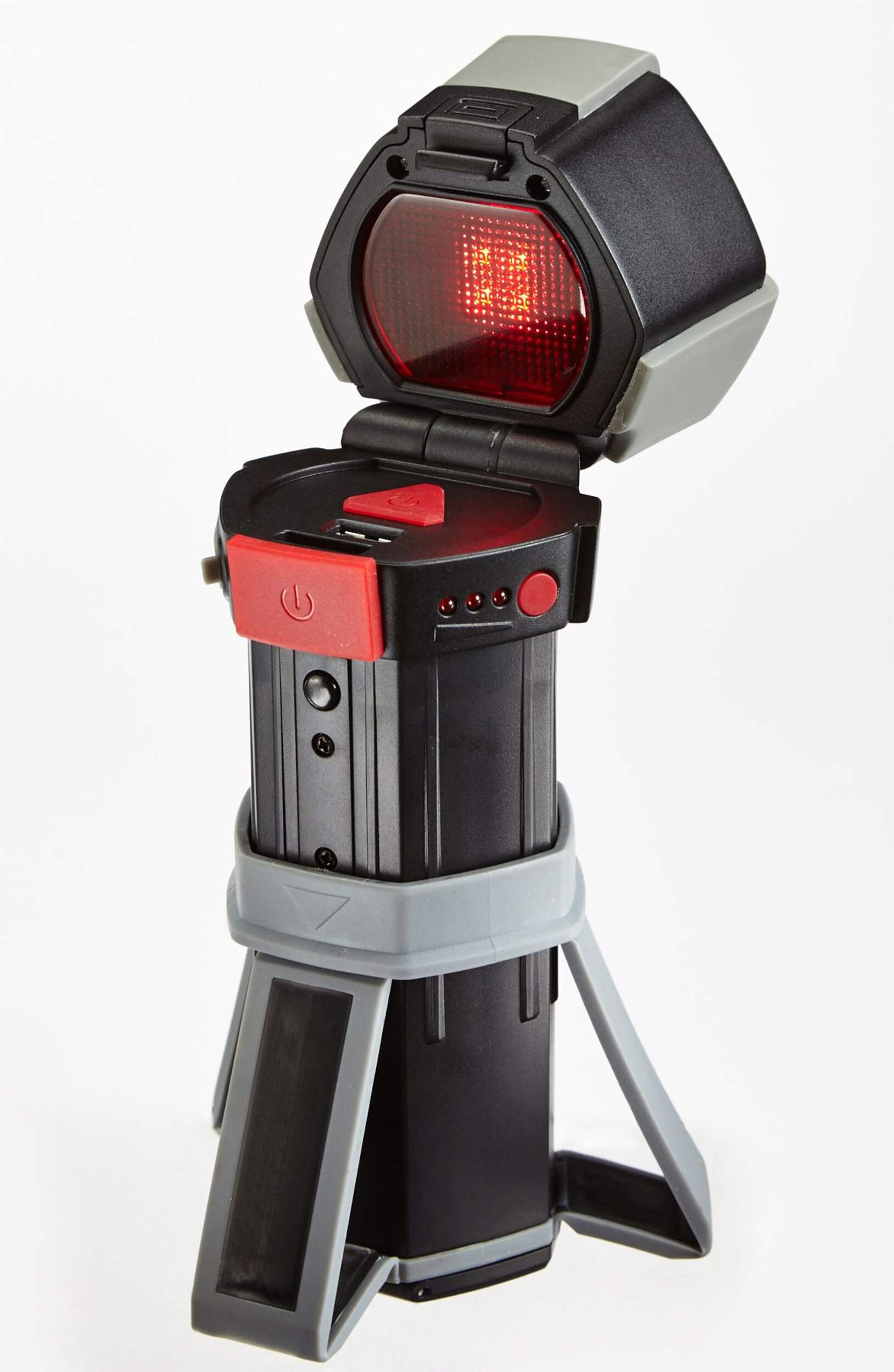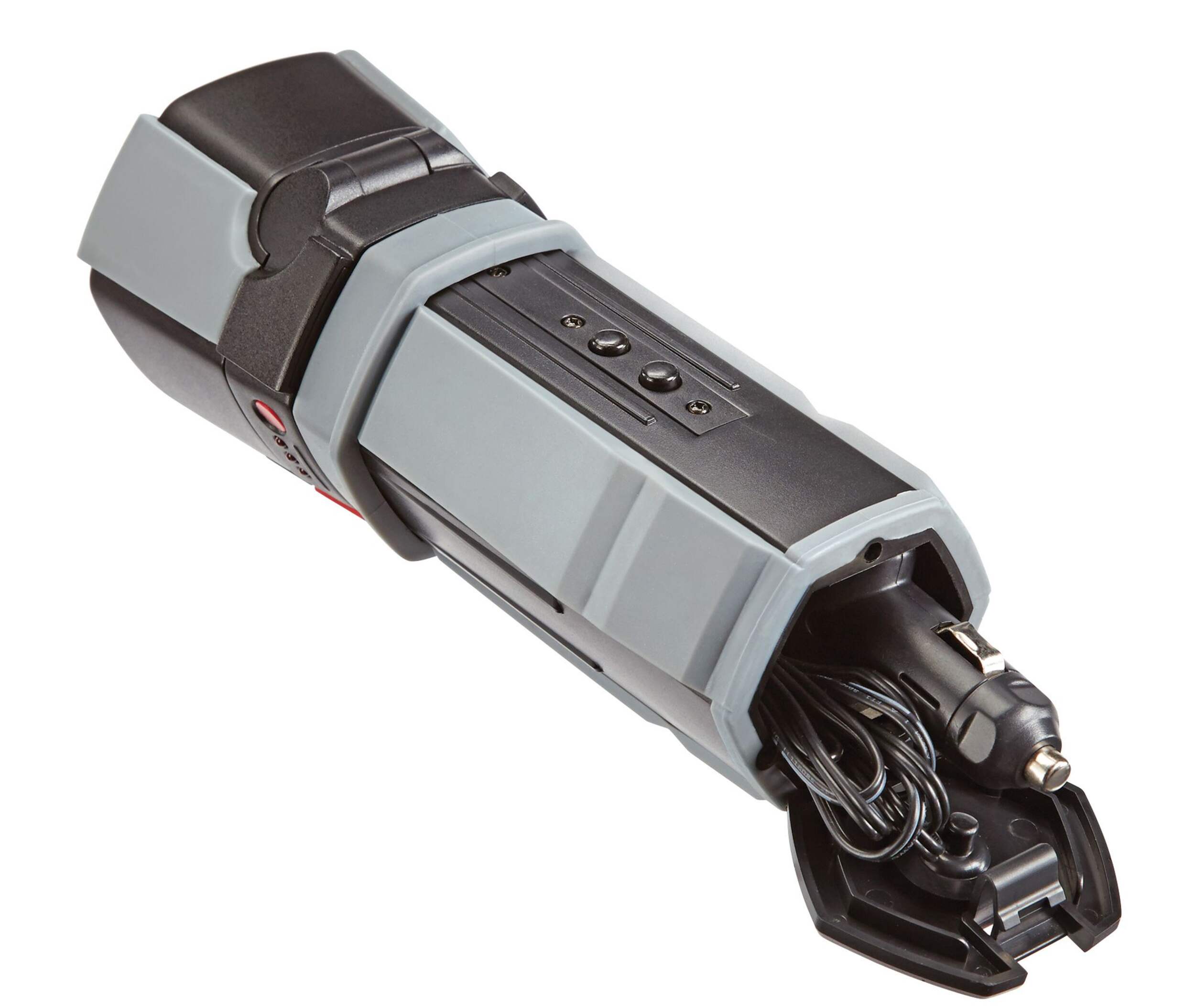 Veuillez prendre note qu'il n'y a PAS de chargeur 12V qui se branche dans l'allume cigarette. Cet item vient avec un câble USB pour recharger la lampe de secours. Si vous n'avez pas de port USB dans votre voiture vous ne pourrez pas recharger la lampe. Oui il y a une base magnétique mais l'aiman permanent n'est pas assez puissant pour tenir la lampe en place !