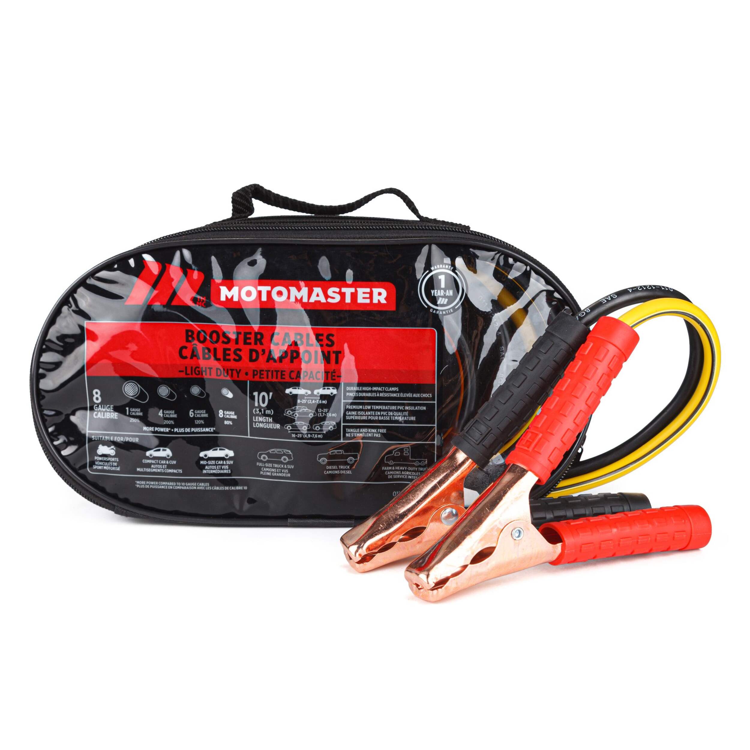 MotoMaster 10-ft, 8 gauge Booster Cables are perfect for light-duty jump starting applications, such as small size and mid-size cars, SUVs, ATVs, motorcycles and more