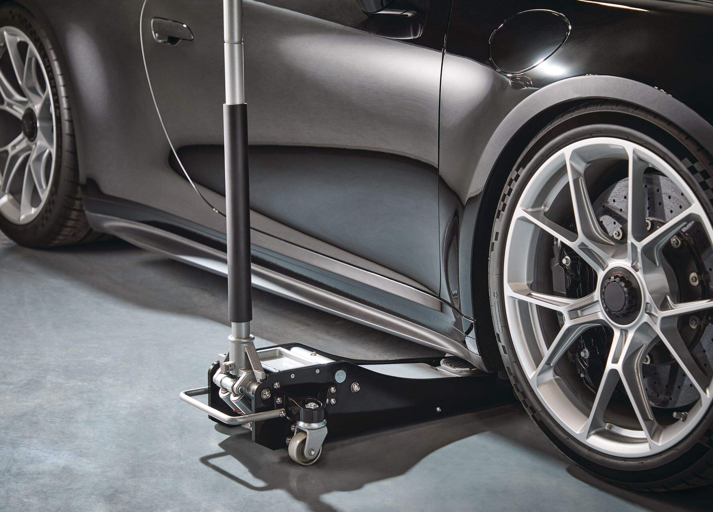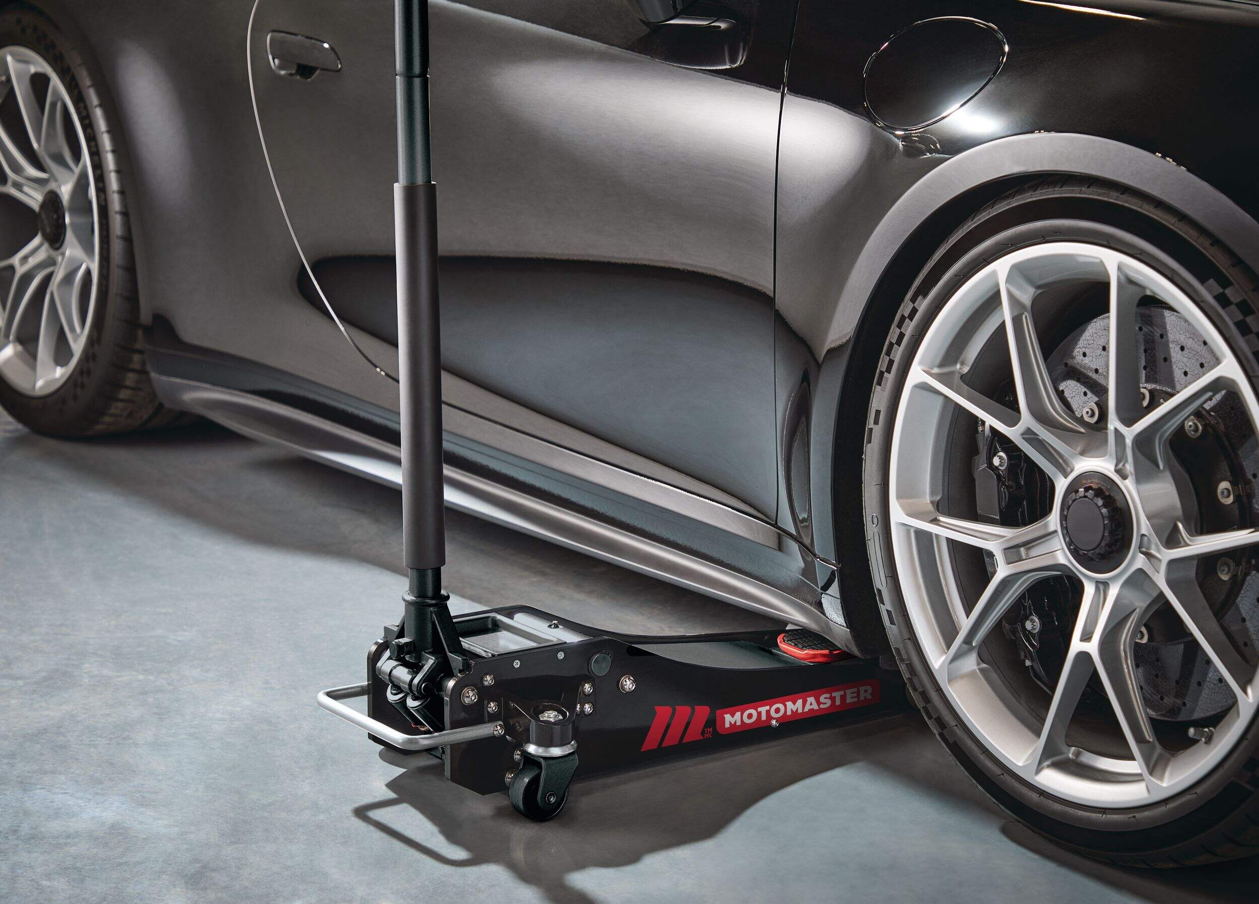 The MotoMaster Low-Profile Hybrid Car Jack, 3-Ton, is designed for efficiency and precision. Its low pickup height allows easy access to low-profile vehicles, while the dual pump system ensures quick lifting. The hybrid construction combines durability with lightweight aluminum components, making it a reliable tool for any garage.