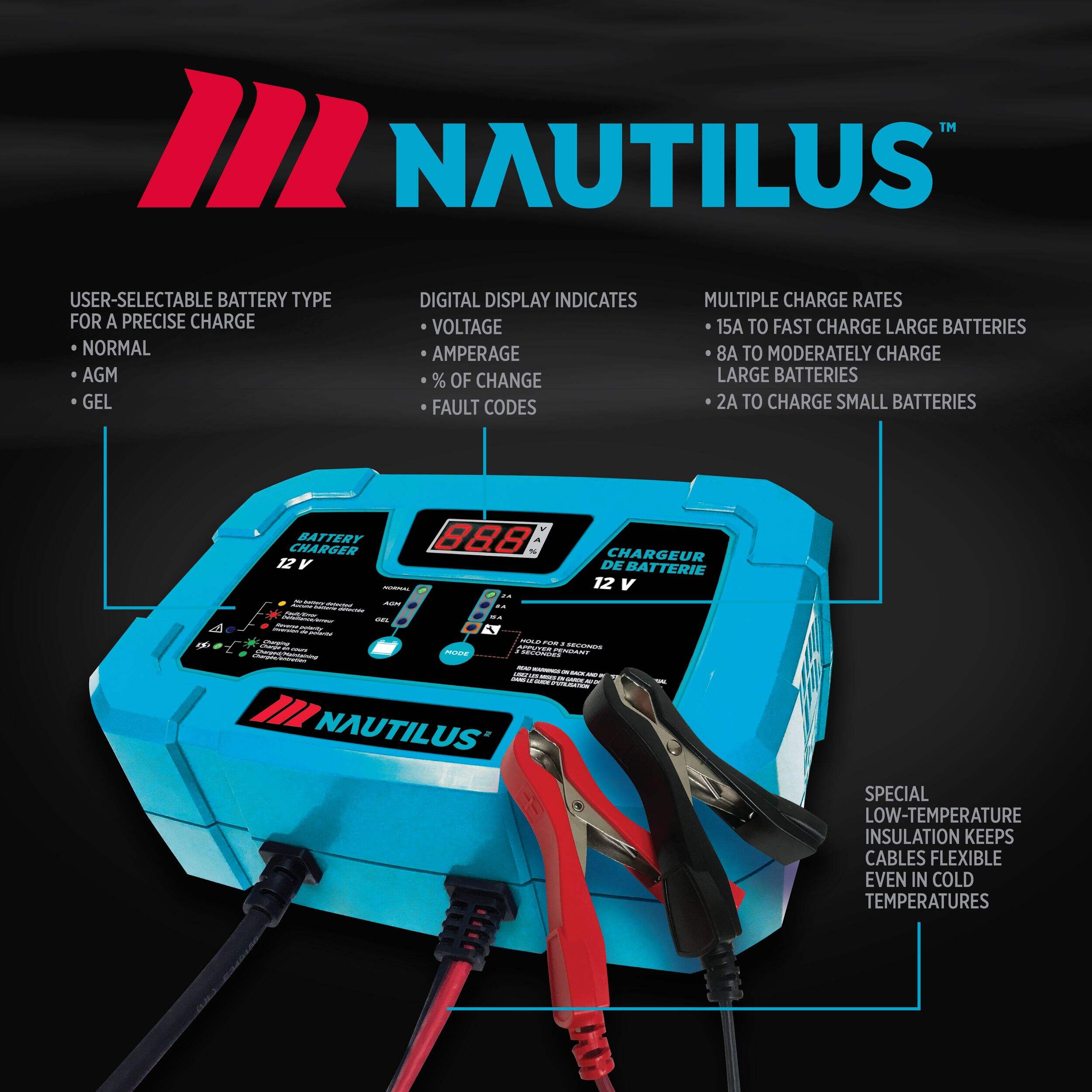 The MotoMaster Nautilus Smart Battery Charger/Maintainer is the ideal solution for keeping your 12-volt batteries in peak condition, whether you're looking to recharge a car battery, marine battery, or any lead-acid battery. With multiple charging modes and a fully automatic process, it takes the guesswork out of battery maintenance, delivering optimal performance for different battery chemistries while protecting against damage. Perfect for year-round use, even in harsh winter conditions.