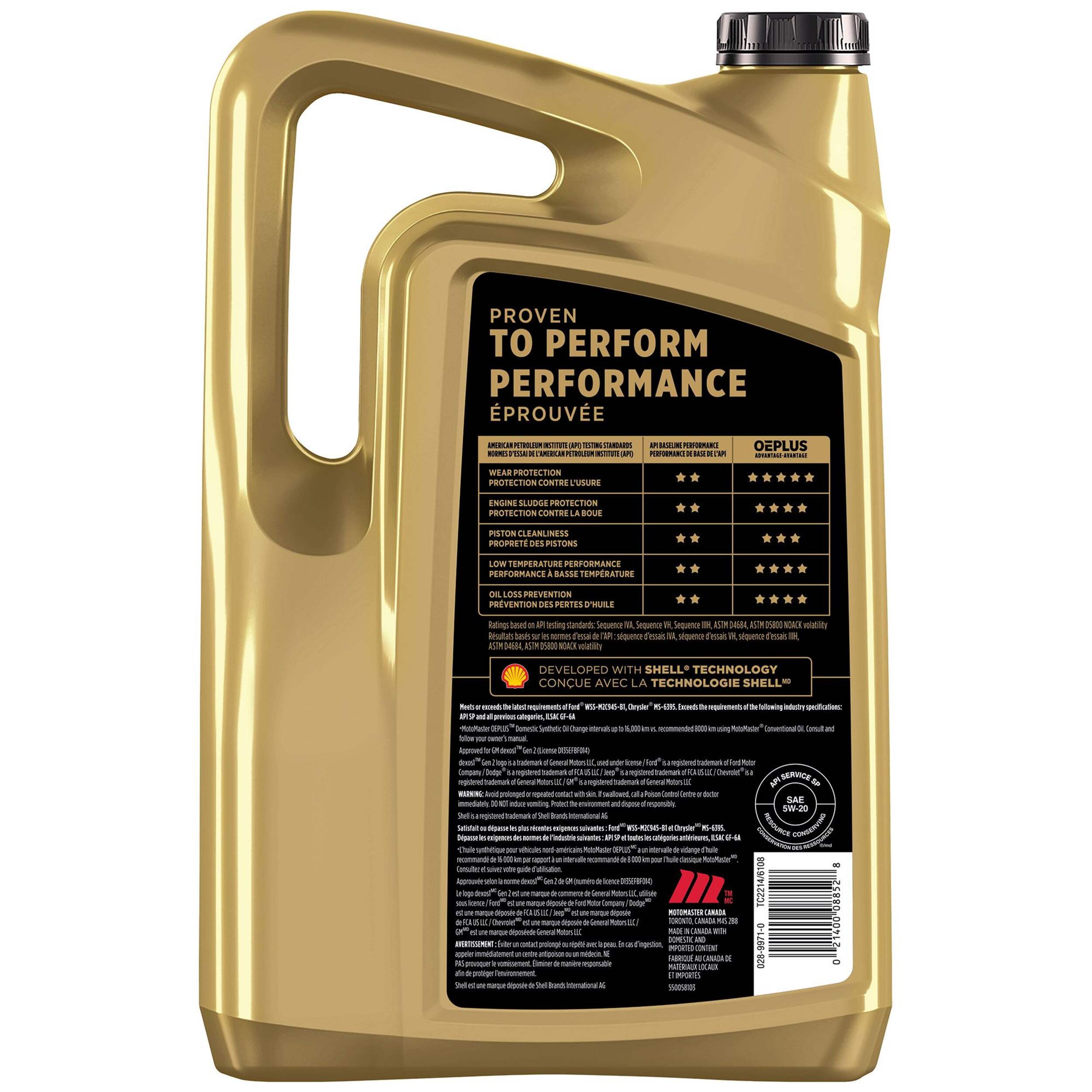 MotoMaster OEPlus Domestic Premium Synthetic Engine Oil is developed with Shell Technology in a new and exciting formulation designed to provide complete engine protection and piston cleanliness. This premium oil also outperforms the latest API specifications by delivering superior protection across all weather conditions for North American vehicles.