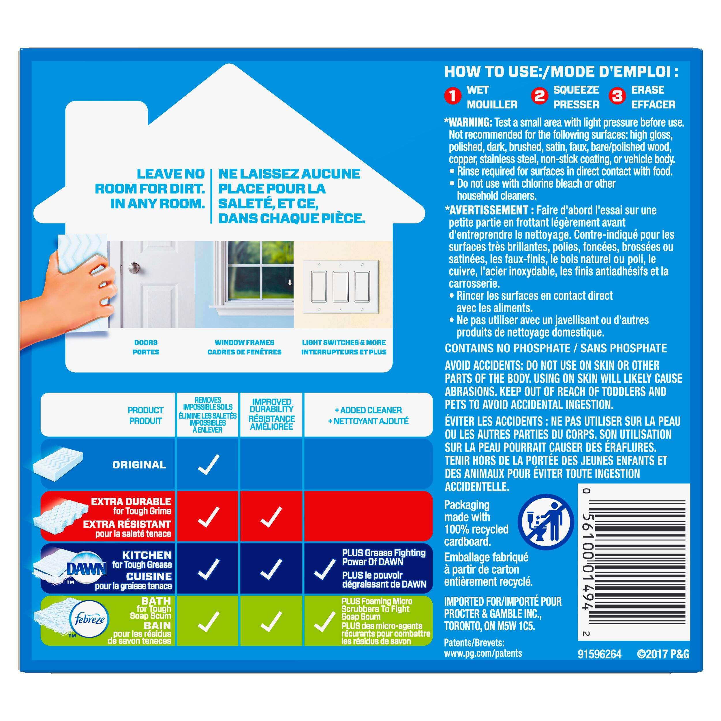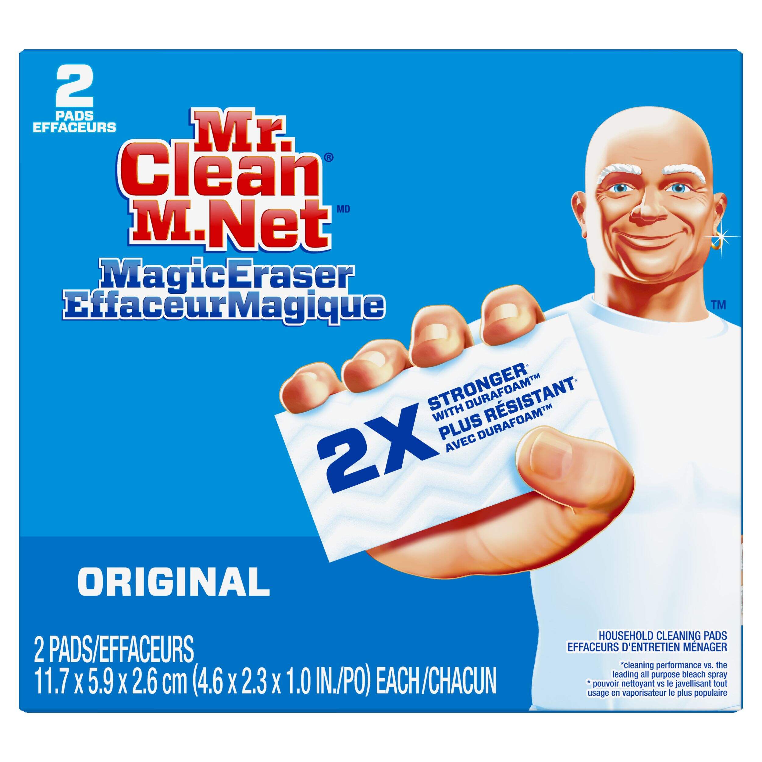 Mr. Clean Magic Eraser Original erases marks on walls, floors and more. To discover the cleaning possibilities, simply take a swipe. Micro-scrubbers reach into the surface grooves, lifting away built up dirt and grime. The Mr. Clean Magic Eraser Original is so powerful that each swipe removes more grime than the leading all-purpose bleach spray cleaner. Works with water alone!