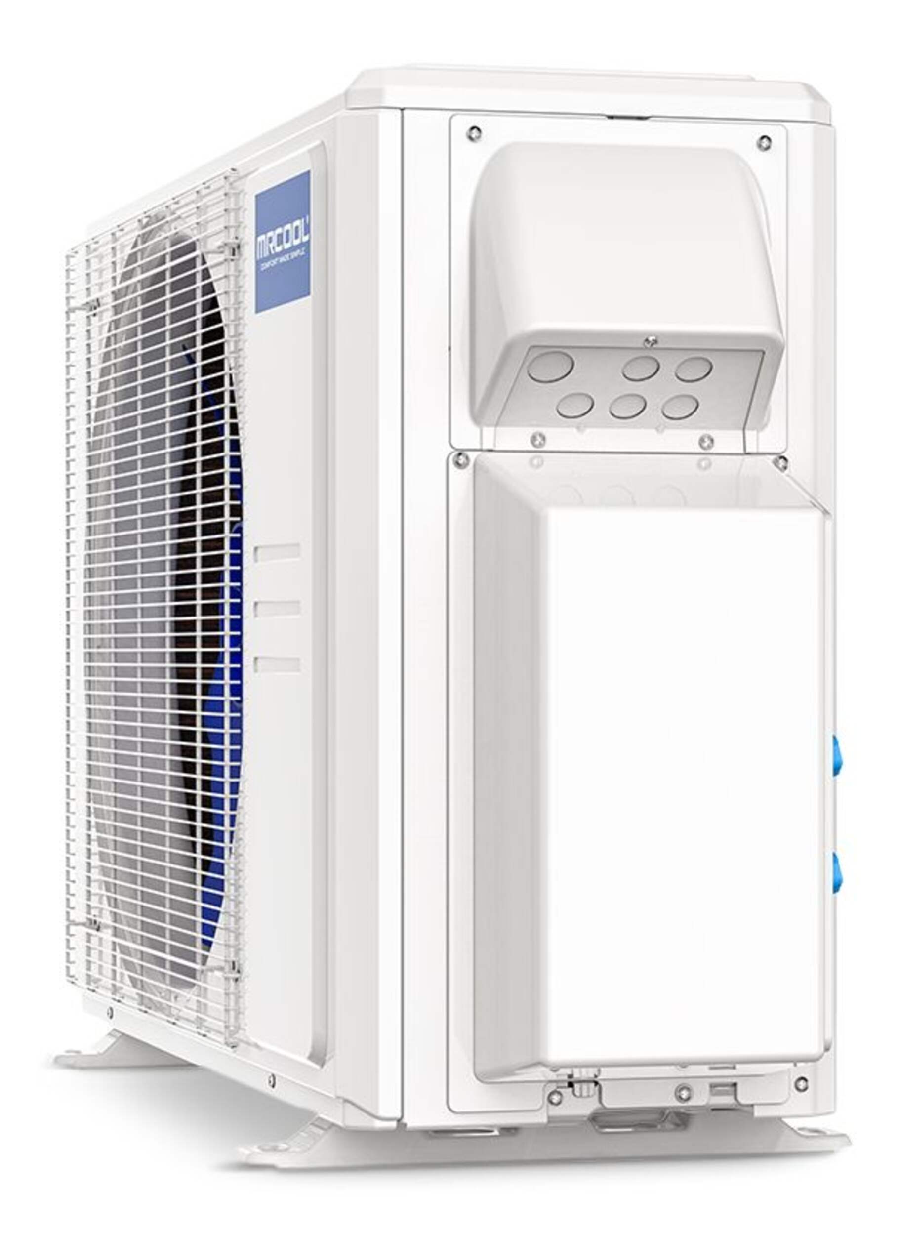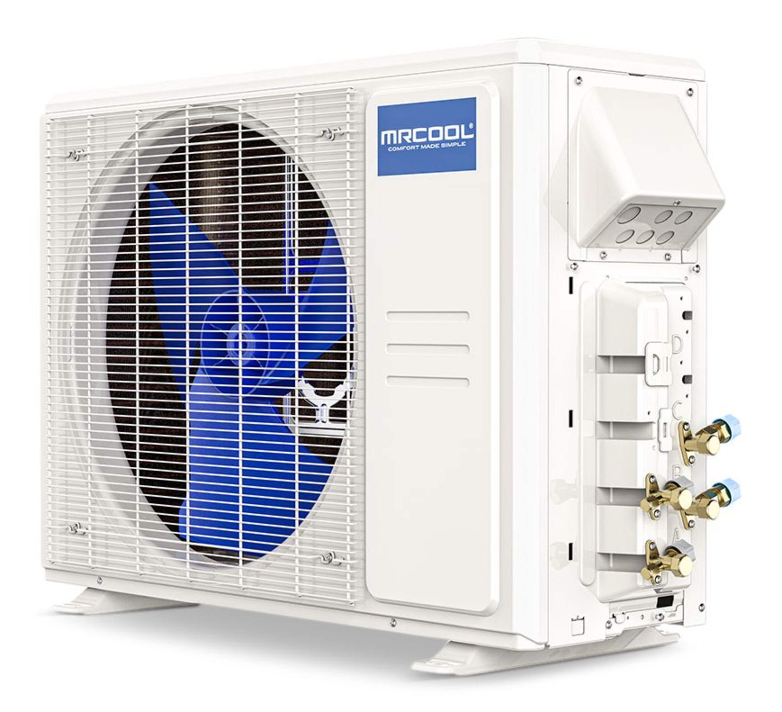 MRCOOL Ductless DIY Multi-Zone Heat Pump Package includes one MRCOOL 27K BTU multi-zone condenser, two 9K BTU wall mounted air handlers, 2 remotes, two 16 ft (4.8 m) quick connect linesets, and the 2 SmartHVAC app kits